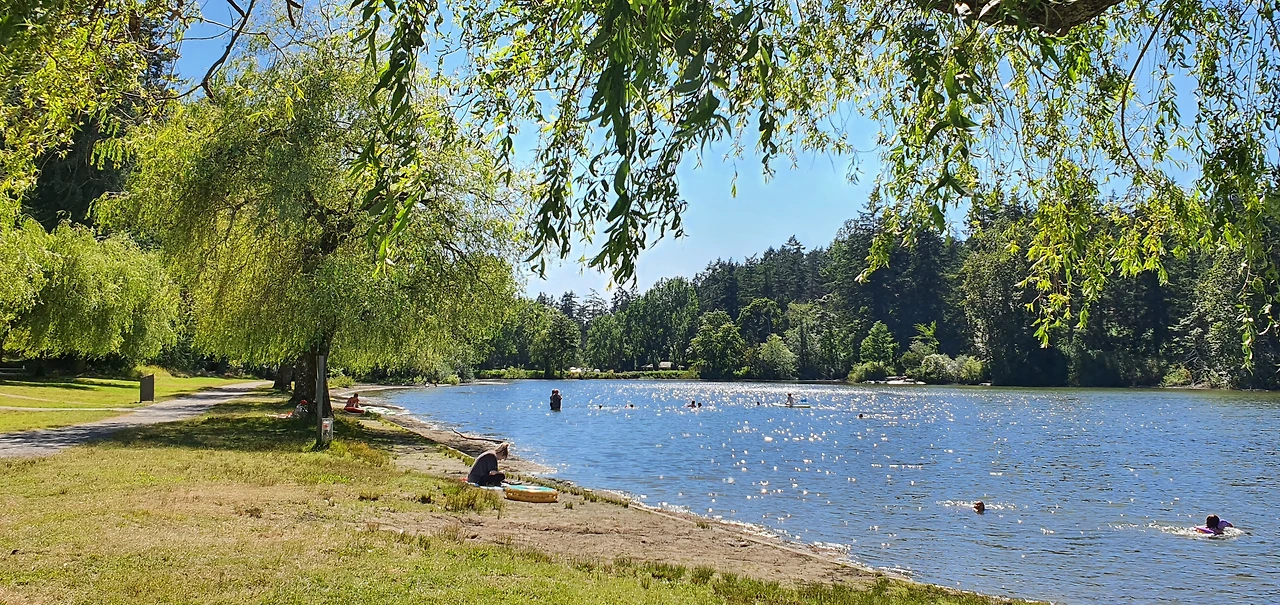 그래서 우리도 뛰어들어 봤다. 처음 뛰어든 호수는 골든이어스 주립공원의 알루엣 호(Alouette lake)였는데, 어린 아이들도 신나게 수영하고 있길래 얕은 줄 알았는데 막상 들어가보니 금방 깊어졌다. 평영까지 수영을 배웠기에 호수에 뛰어들 용기는 낼 수 있었지만, 그렇다고 신나게 즐길수는 없었다. 왜냐하면 수영강습으로 자유형, 배영, 평영을 배웠다 한들 50m 레인 한번 가면 헉헉 거리는 실력으로는 발이 안닿을지도 모르는 물은 겁이 났기 때문이다. 남편도 나보다는 수영을 좀 더 배웠지만 마찬가지라 허리까지 오는데로 들어가 물장구치고 주변 구경 좀 하다 나왔다.
