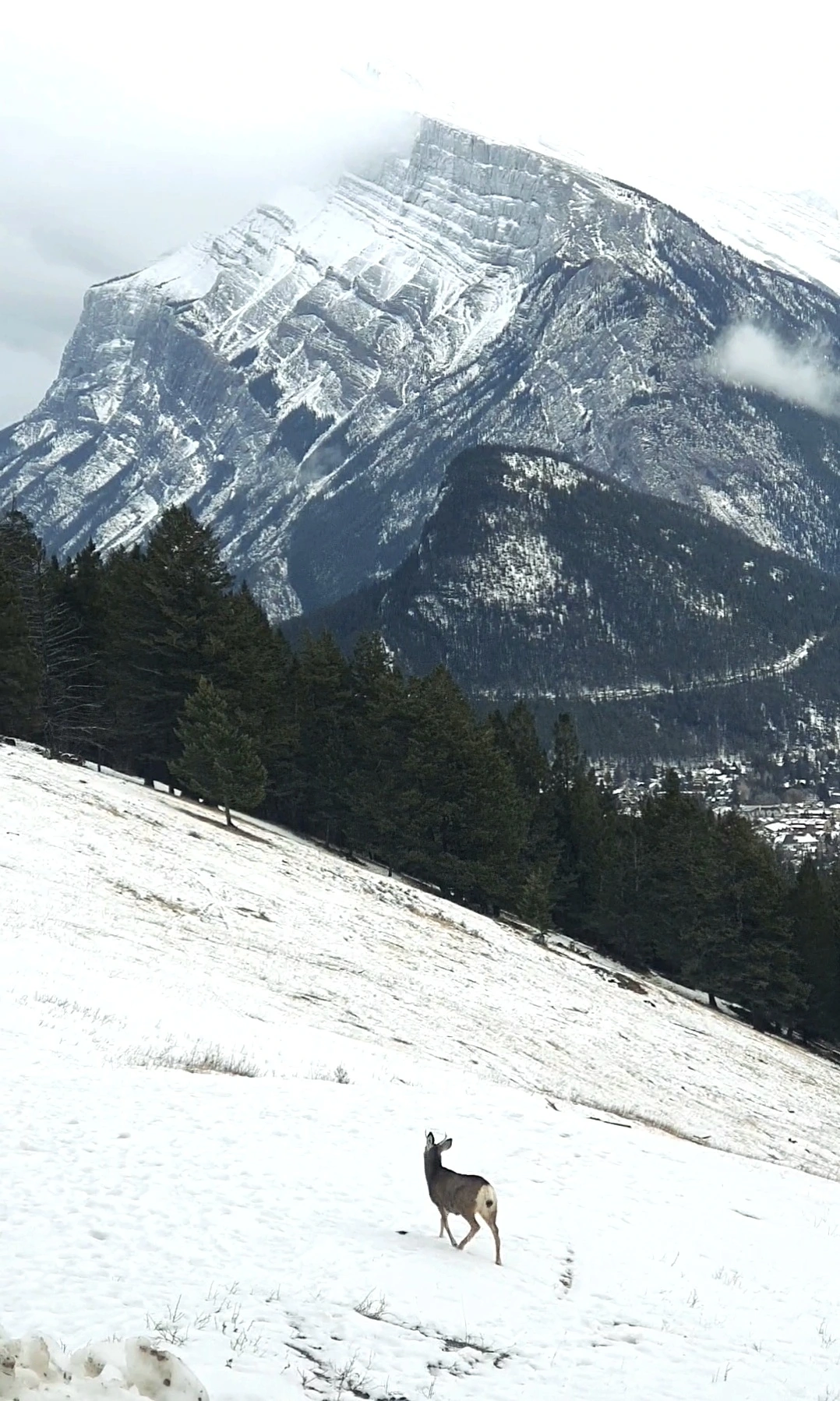 돌아오는 길에는 비지터 센터에서 추천해준, 뷰 포인트에 갔다. 겨울의 꽃이라는 스키장 근처까지 차로 올라가면 펼쳐지는 곳이었는데, 사슴 두마리가 유유히 풀을 뜯으며 걸어가고 있어서 그 만큼 특별했다. 하얀 설경 속 동물의 모습. 겨울 로키는 정말이지 사랑스럽다.