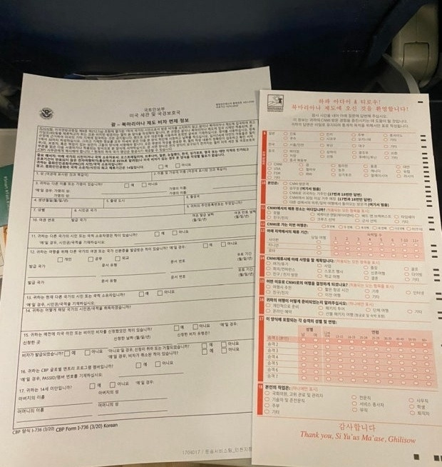 전부 영어로 작성해야 하고 비자면제서와 세관신고서, 둘 다 작성이 필요하기 때문이다.