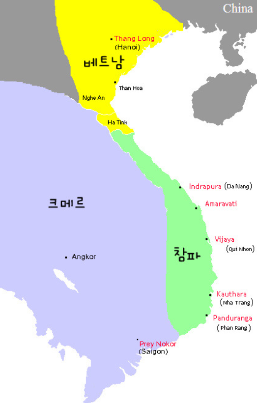 서기 192년 경 후에•다낭 지방에서 발생한 참파왕국은 더 남쪽인 나짱과 판랑에 까지 그 영토가 이르게 되었다. 참파왕국이 임읍이라는 이름으로 역사에 처음 나타난 것이 훨씬 이전이었고, 베트남이 중국으로부터 독립하여 응오왕조를 세운 것이 그 이후이니, 참족이야 말로 베트남 영토의 오랜 주인이라 할 수 있겠다. 물론, 지금의 하노이를 주변으로 하는 지역에는 중국의 지배 하에서도 중원과는 구별되는 교주(지금의 하노이 및 인근지방) 사람이라는 인식이 존재했다.