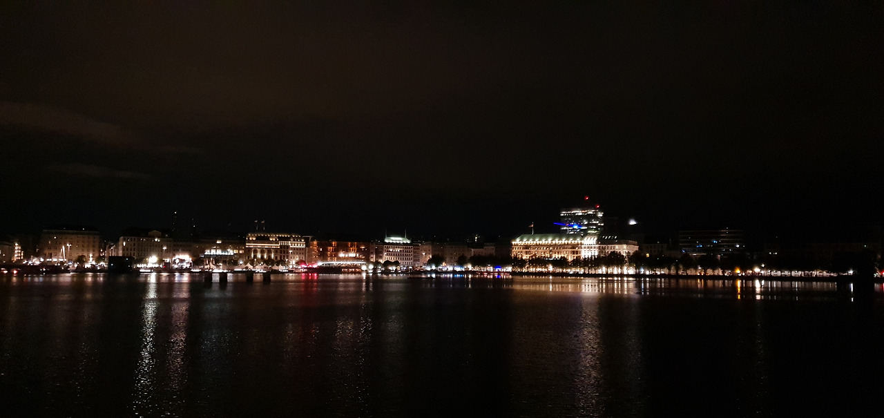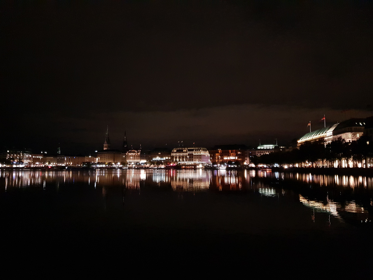 함부르크는 도시 중앙에 매우 큰 인공 호수가 두 개 있는데 그중 하단부인 Binnenalster라는 호수에 도심이 모여있다. 이 호숫가에서 보는 야경은 전체 여행 중 손에 꼽는 야경 중 하나이다.