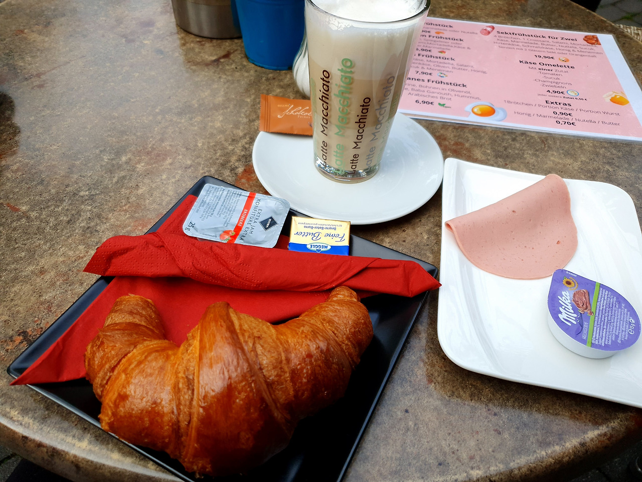 아침은 숙소에서 나와 3분 정도 걸으면 나오는 골목의 작은 로컬카페에서 먹었다. 이 카페는 Breakfast set 메뉴를 판매하고 있었지만 학생인 나에겐 너무 비싼 금액이라 그냥 크로와상 하나와 밀크티 한 잔을 주문했다. 크로와상을 주문하니 버터와 잼, 그리고 햄 한 장을 같이 주었다. 아침을 먹으며 하루 동안 무엇을 할지 여유롭게 일정을 짜며 시간을 보냈다.