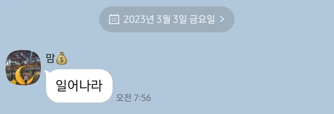 하지만 엄마는 끝내 답장을 하지 않았고 다음날 오전 7시가 되자 어김없이 엄마의 모닝콜이 울렸다.