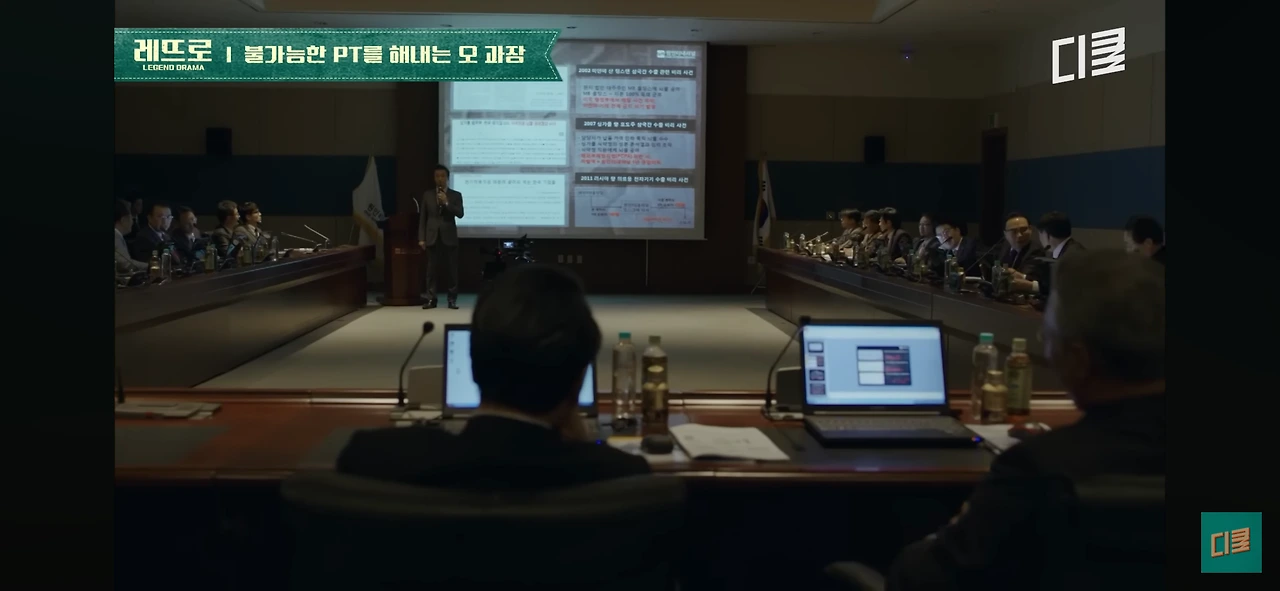 드디어 사장과 임원단을 모신 프리젠테이션 당일, 오상식 차장은 기획서대로 ‘다양한 비리 사례’를 가장 먼저 언급하며 프리젠테이션을 시작했다. 예상대로 매뉴얼 기획서에 익숙한 임원들은 한 번도 보지 못했던 파격적인 기획서 전개 방식에 크게 동요하고 분노하기 시작했다. 이어 오차장은 비리가 발생한 뒤 중단된 사업 아이템들이 타 기업에서 성공한 사례들에 대해 거침없이 설명했다.