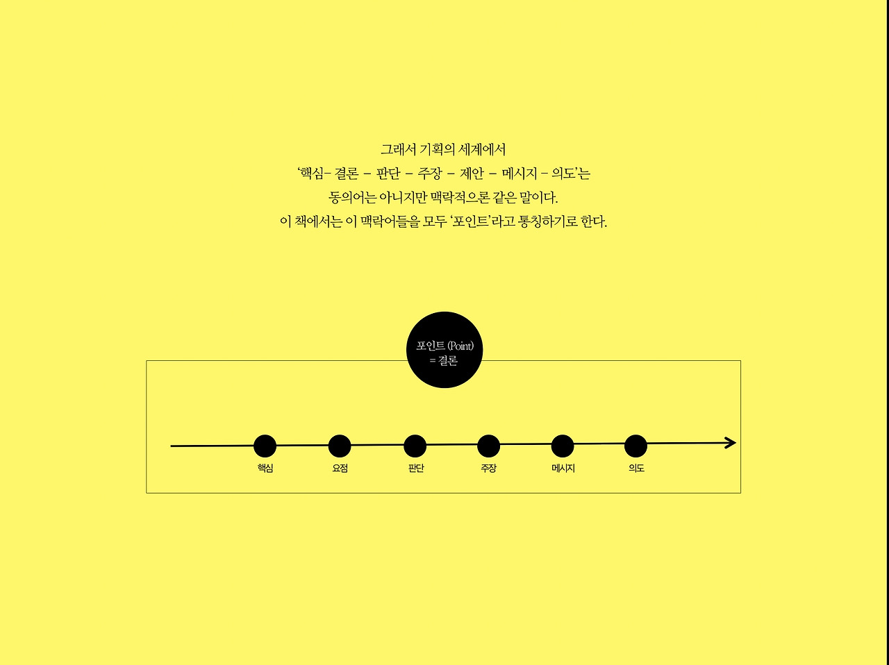 동의어는 아니지만 맥락적으론 같은 말이다. 맥락어라고 한다. 이 책에선 이 맥락어들을 모두 ‘포인트’라고 통칭하기로 하자.