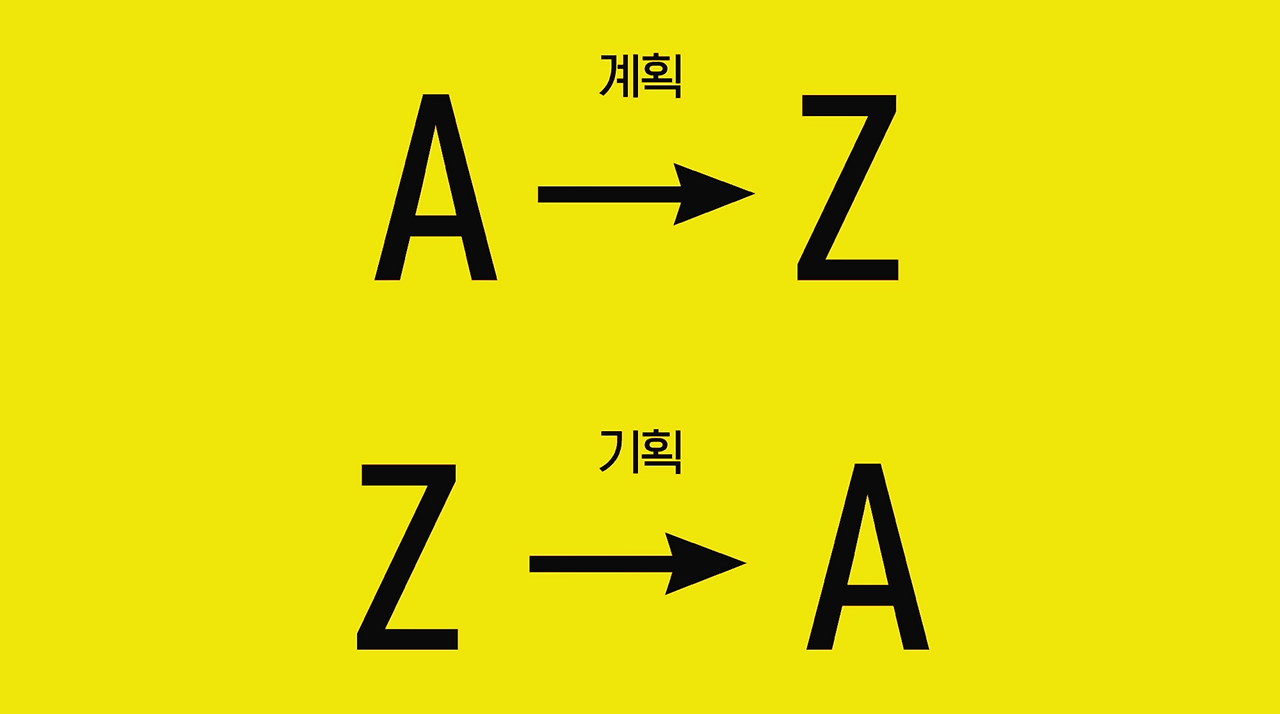두 접근방식의 차이점을 간파했는가? 18도의 차이가 아닌 180도의 차이다. 기획계획은 사고방식의 메커니즘으로 보면 정반대의 패턴인 것이다.