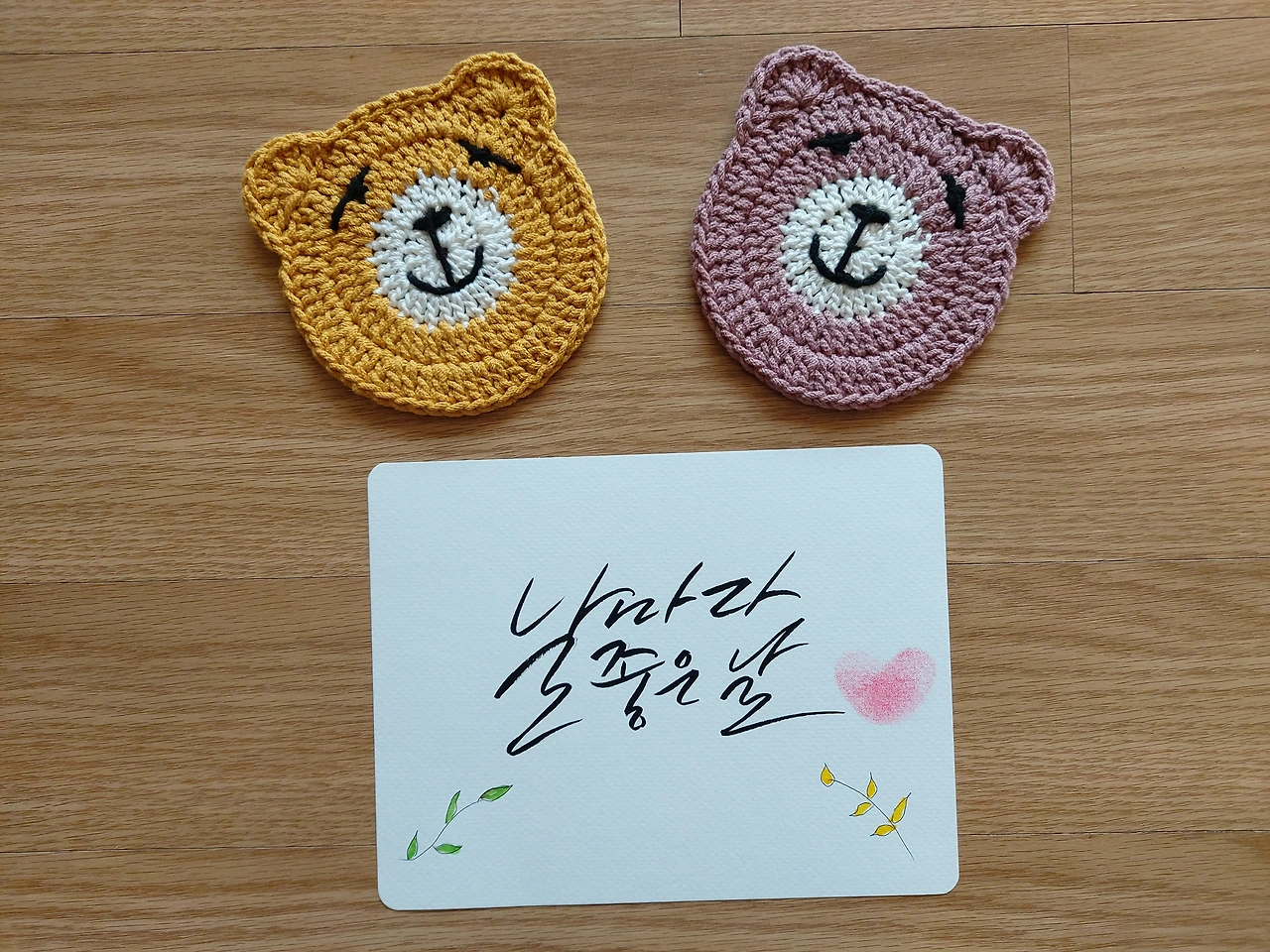부부의 하루하루가 좋은 날이 되길!#손뜨개#티코스터#곰돌이티코스터#위로