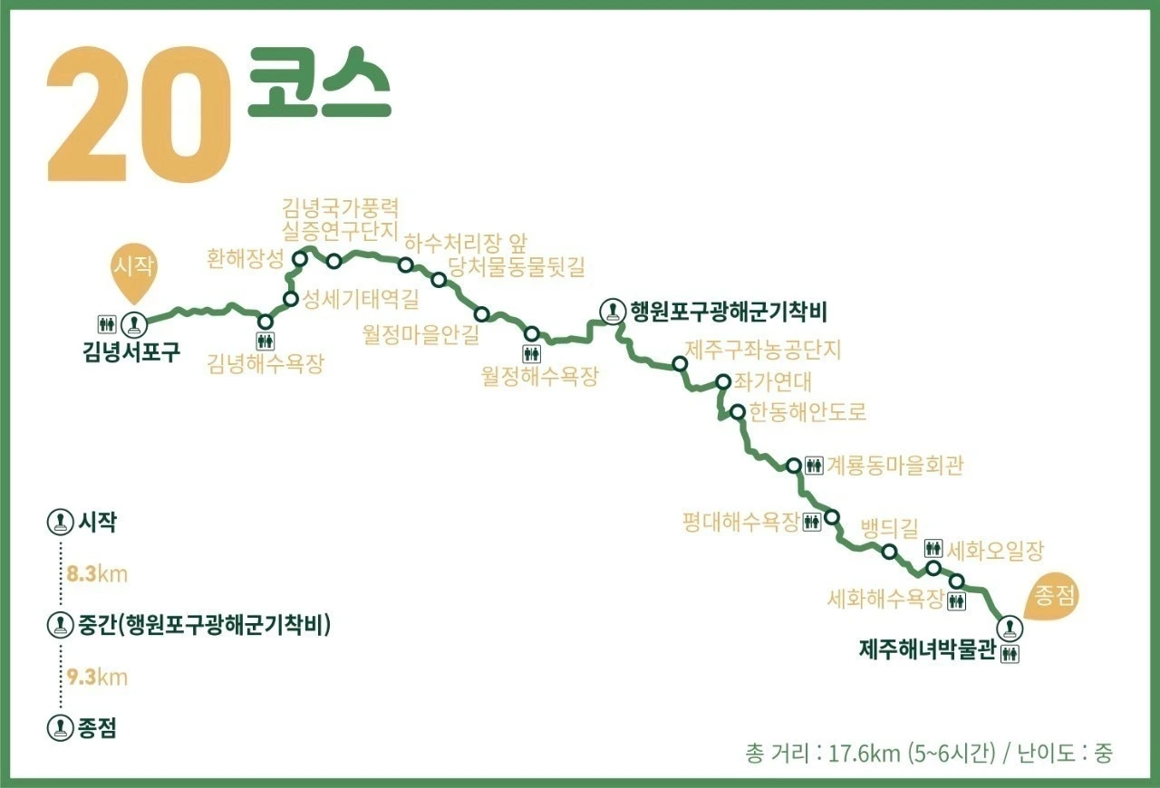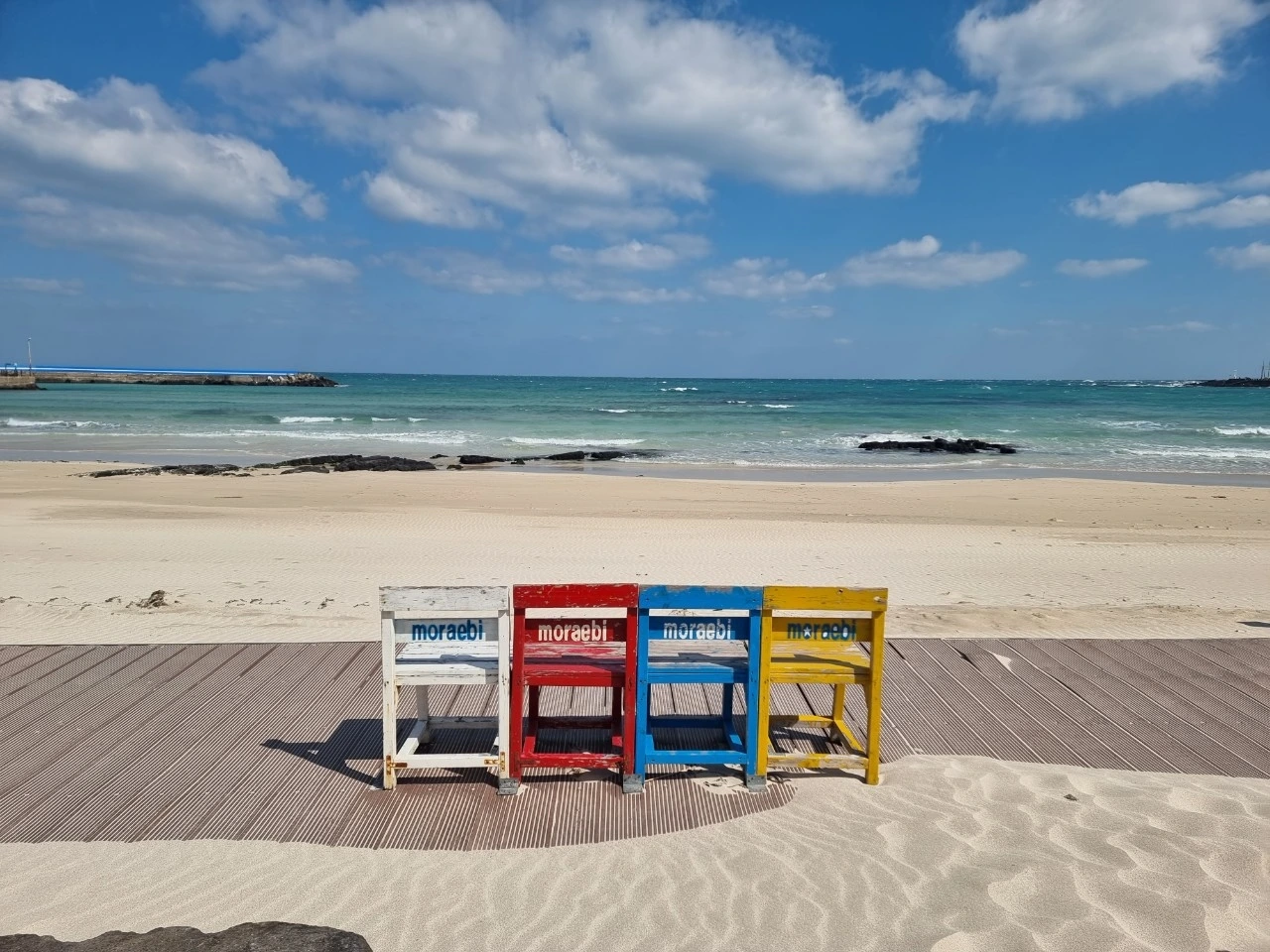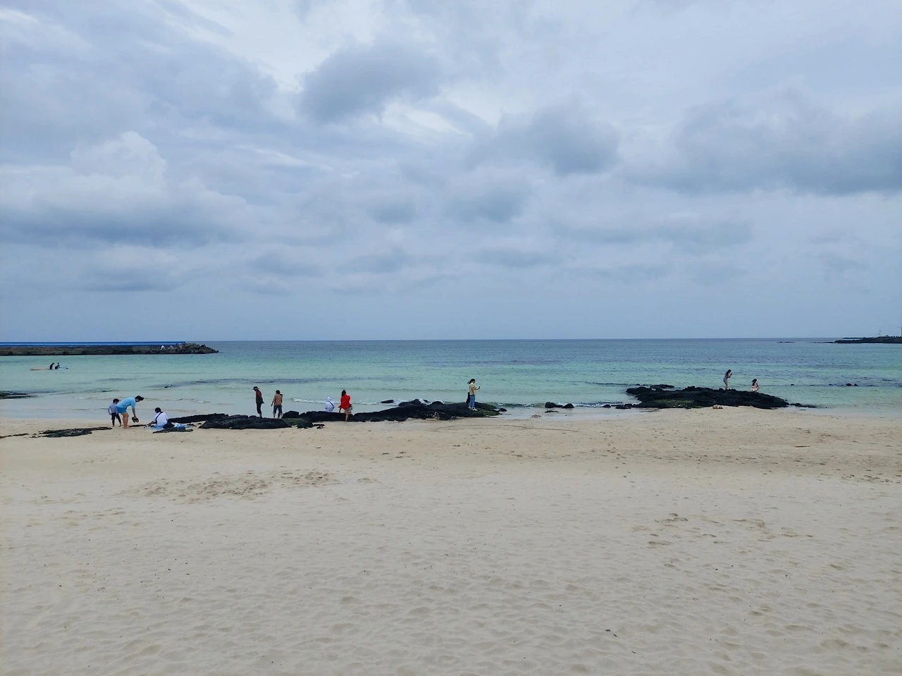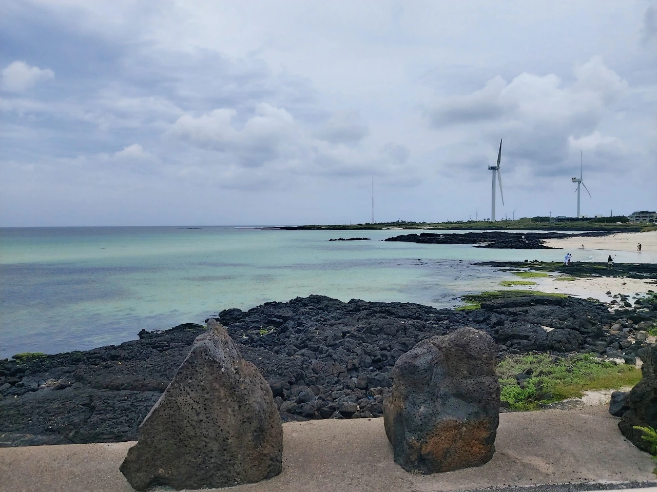 어제 찾은 김녕해수욕장의 색깔이 밤새 바뀌어 있었다. 날씨가 흐린 탓인지 명도와 채도가 조금 낮아진 느낌이었다. 이 바다 저 바다 군데군데 많이 봤지만 제주바다는 가히 최고라고 할 만큼 바다 빛깔이 고왔다. 오늘은 거의 바다를 끼고 걷는 길이라고 가이드가 상세히 알려주었다.