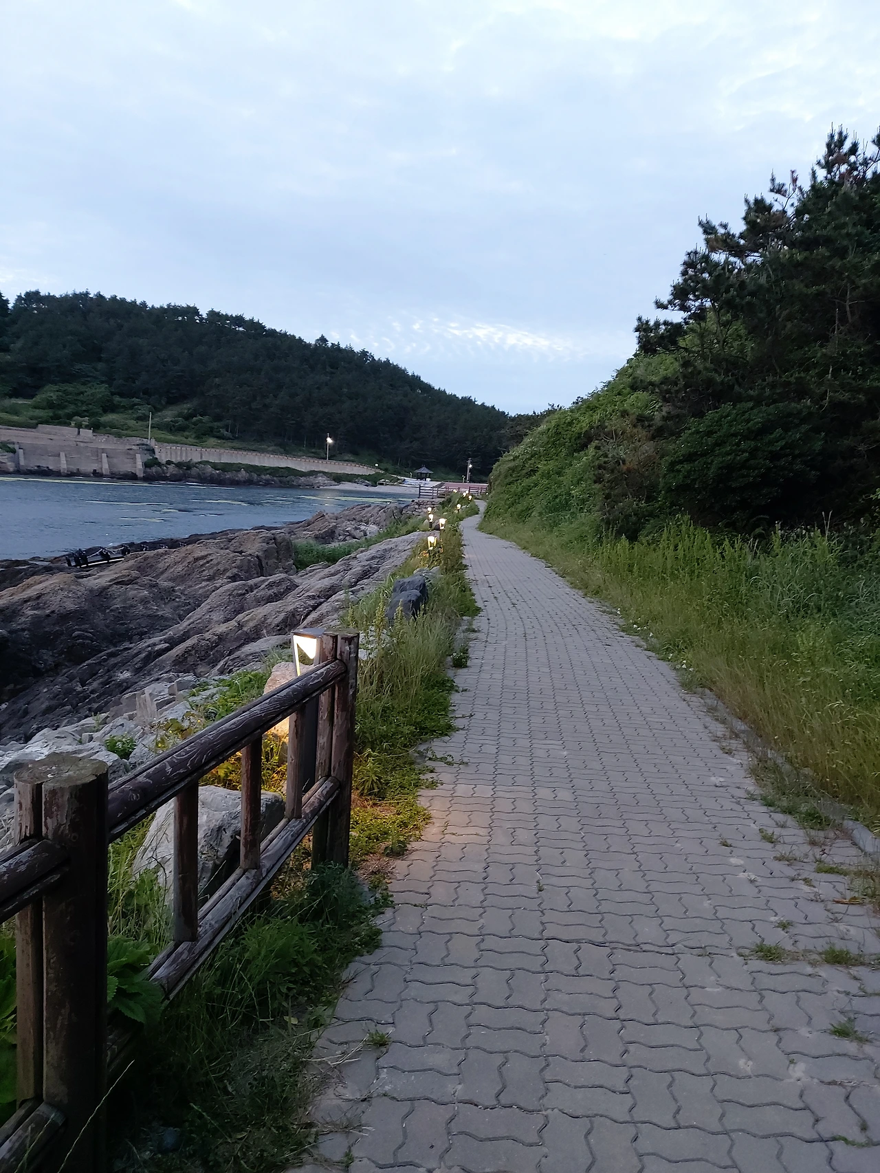노랗게 피어 바닷바람에 몸을 실은 이름 모를 꽃과 정자 위에 드러누운 몇몇 일행들이 보였다. 슬그머니 옆으로 가서 꽉 조였던 신발끈을 풀고 배낭을 베개 삼아 벌렁 누워버렸다.