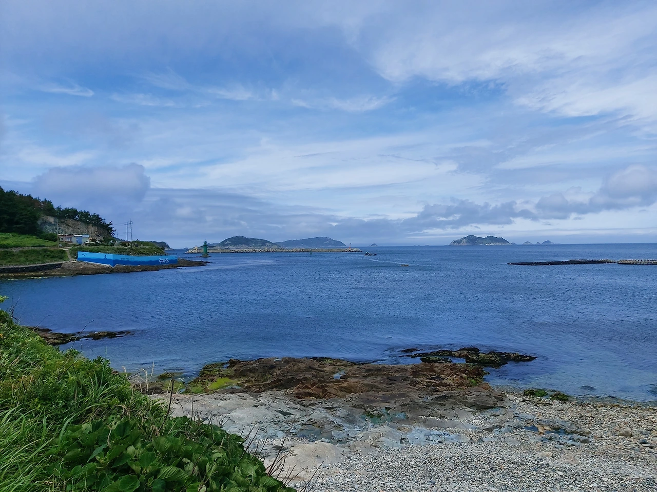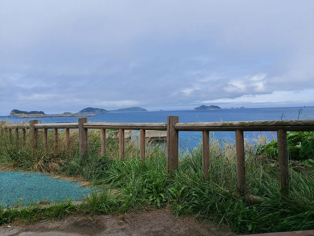 올레길 속 올레길 추자도에 왔다. 얼마 만에 먹어보는 멀미약인지, 멀미약이 반가운 것은 처음인듯했다. 제주항에서 1시간 정도 배를 타고 들어와 민박집 차에 짐을 두고, 귀여운 타일그림으로 채워진 마을 담벼락을 지나 상추자도를 오르기 시작했다. 우려했던 비는 오지 않고 안개만 바람을 타고 휘잉 휘잉 소리 내며 내 뒤를 따라 산을 올랐다. 그리 높지 않은 산이었음에도 숨이 차오르기 시작했고 다리도 조금씩 휘청거렸다. 전날 쉽게 잠들지 못하고 뒤척인 탓이렸다. 세화바다의 물빛을 눈앞에 두고 커피를 마시고 싶다는 생각에, 창 넓은 아니 창이 바다로 열린 카페에서 조금 늦은 오후 시간임에도 커피를 마신 게 잠을 몰아낸 이유일지도 모르겠다. 결국 조금 빠른 거북이가 되어 지나간 길을 되돌아 걷다가 길가 정자에서 누군가 손을 흔드는 모습을 보고 걸음을 멈추었다. 조금 떨어진 거리에서 보니, 캠프 일행인 듯하였으나 확인이 되지 않았다.