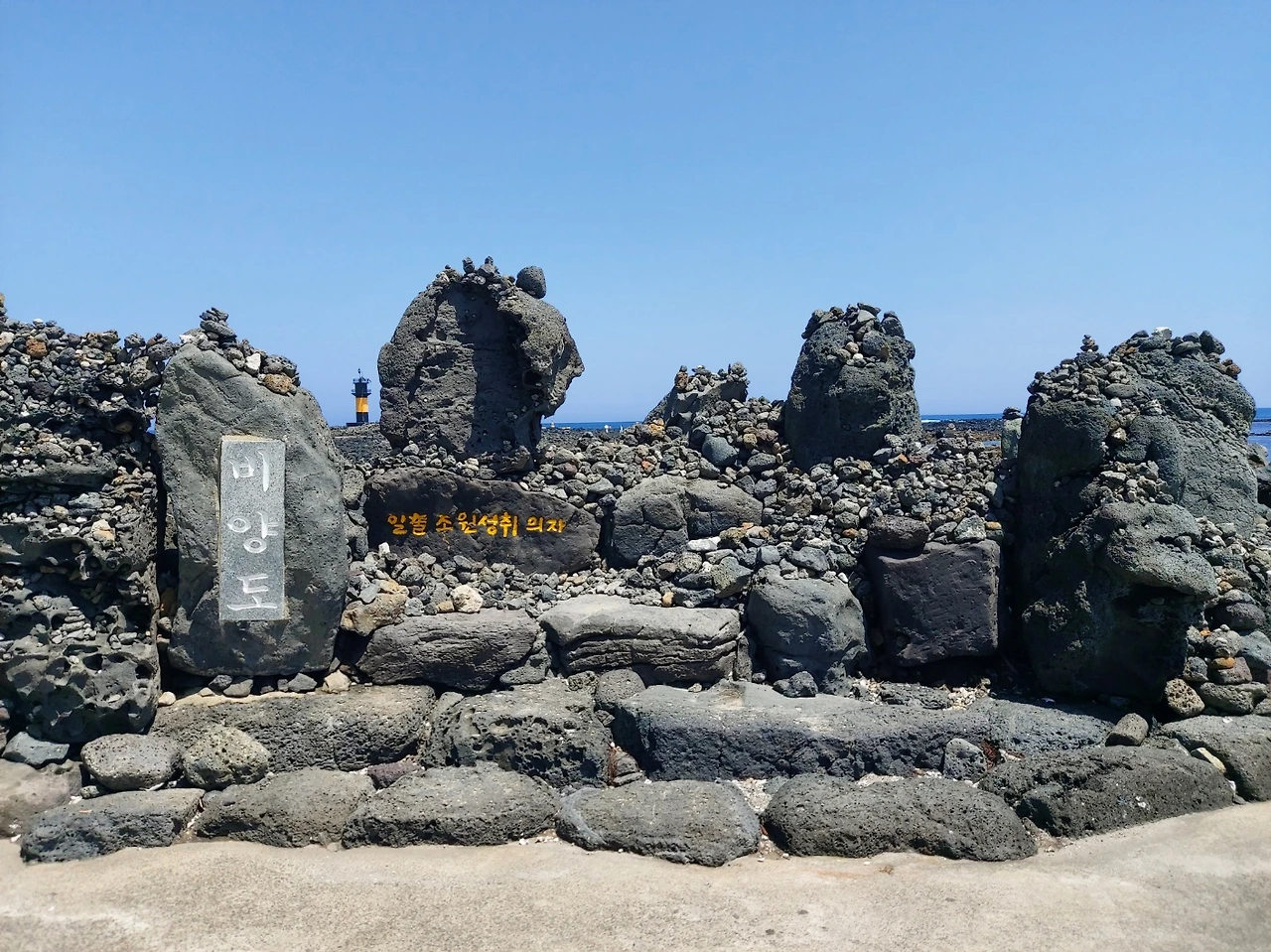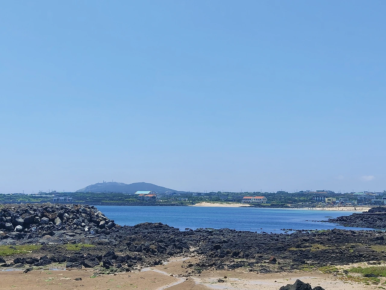 검멀레 해안 끝부분 즈음, 우도 땅콩아이스크림의 원조집이라 불리는(자칭?) 노란 가게 앞에는 사람들이 무리 지어 있었다. 인증사진을 찍은 후 맛본 아이스크림은 아주 고소하고 달달했다. 맛있기로 소문난 우도땅콩을 껍질채 들어있어(모든 곡물과 과. 채는 가능하면 껍질채 섭취하려고 노력한다) 더 마음에 들었다. 아이스크림 중간 부분이 공기층으로 가득 차 있어 아쉽긴 했지만, 눈앞에 펼쳐진 산과 바다로 어우러진 장관이 아쉬움을 거둬내주었다.