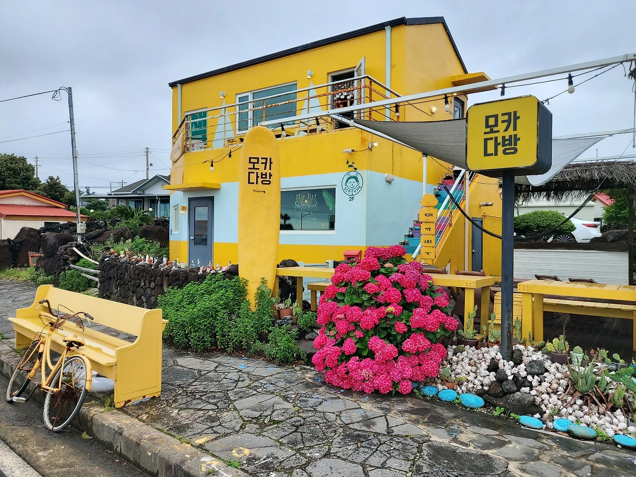바닷가 도로변에 노랗게 자리 잡은 M다방은 커피광고의 촬영지라고도 했다.