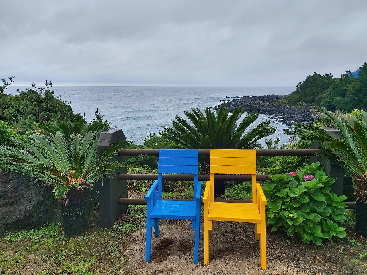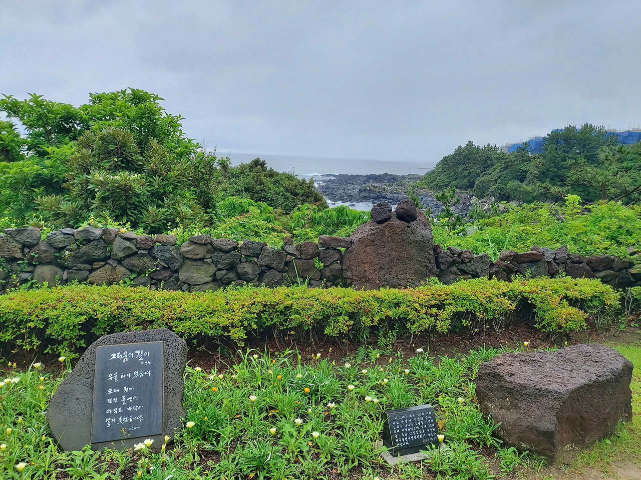 갸우뚱 거리며 걸어가는 동안 비는 그치고 조금씩 지치고 피곤이 느껴질 즈음 J가 커피 맛집을 찾았다며 일행을 이끌었다. 바다전망이 좋은 ○○연수원 바베큐장에서 허락도 받지 않고 행동식을 먹은 우리는 희망이 보이는 숲길을 걸어 M다방을 찾았다.