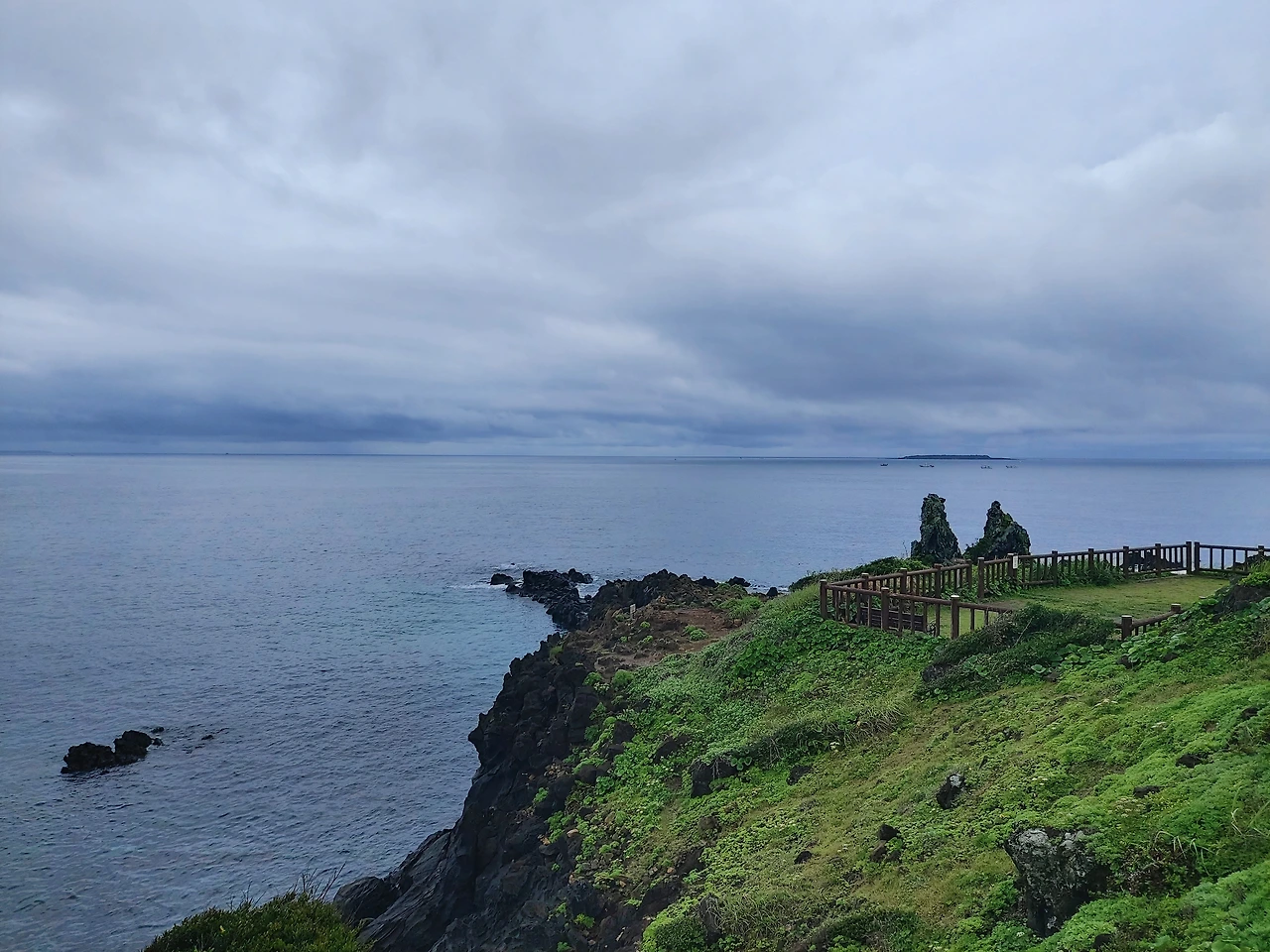 너무 여유를 부렸는지 일행과 떨어졌다는 불안함에 제지기오름은 오르지 않고 우회해서 걷다가 섭섬이 보이는 바다에 서서 또 한참을 머물렀다. 바다 가까이에서 사진을 찍던 중년의 여성은 제주에서 태어나 자라고 살고 있다고 했다. 제주사람이지만 아직 가보지 못한 곳이 많다며,