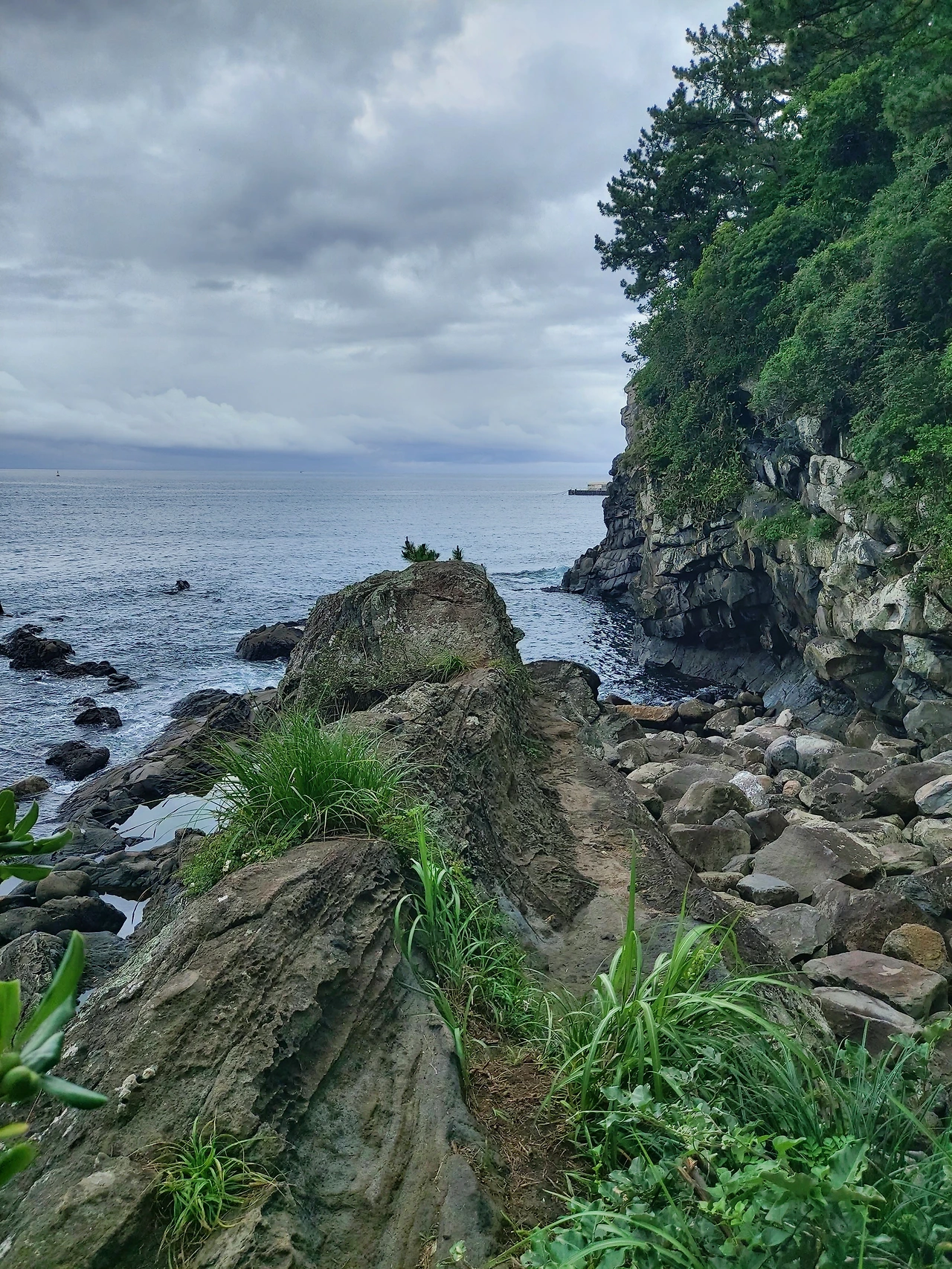 쇠소깍에서 캬약을 타겠노라고 누군가가 말했었는데 말은 온 데 간 데 없고 다양한 포즈로 사진 찍기에 바빴다. '그럼요, 카약은 직접 타는 거 아니에요. 눈으로만 타는 거예요' 스스로를 합리화시키며 분사되는 듯 내리는 비로 인해 조금씩 젖어드는 길을 걸어 나갔다. 우산을 써야 하나 말아야 하나를 고민하며...