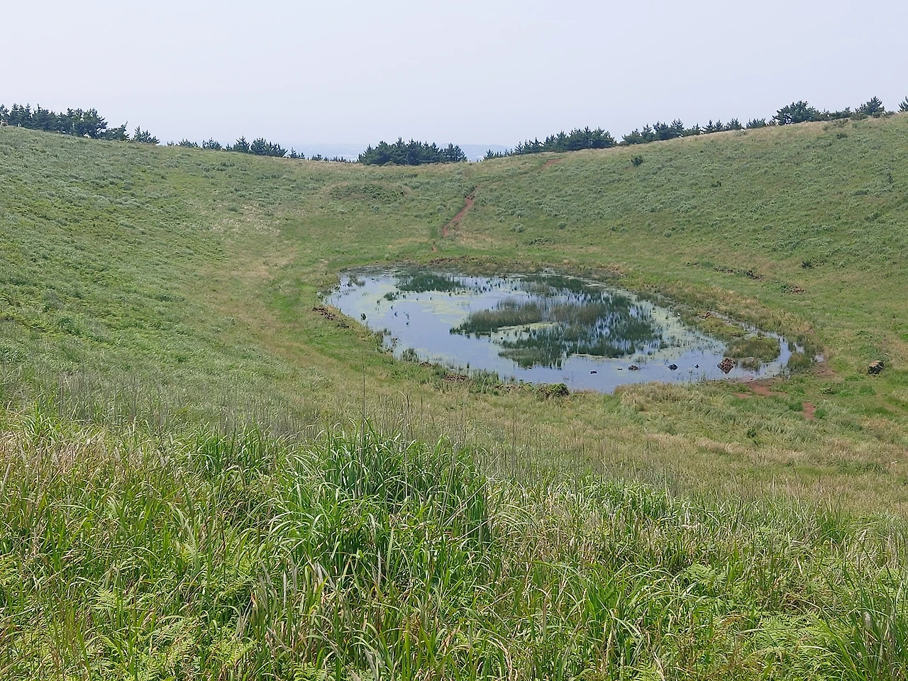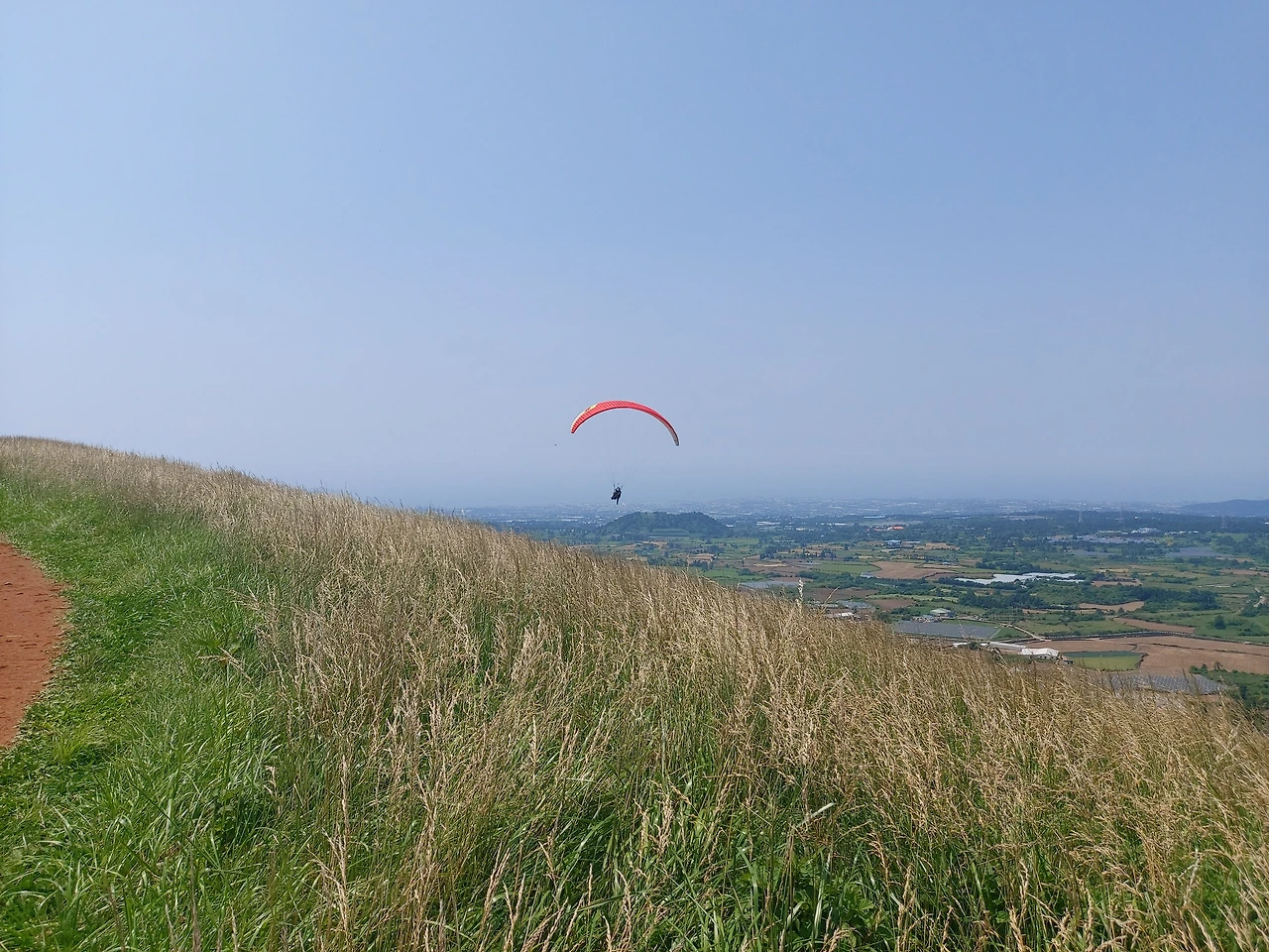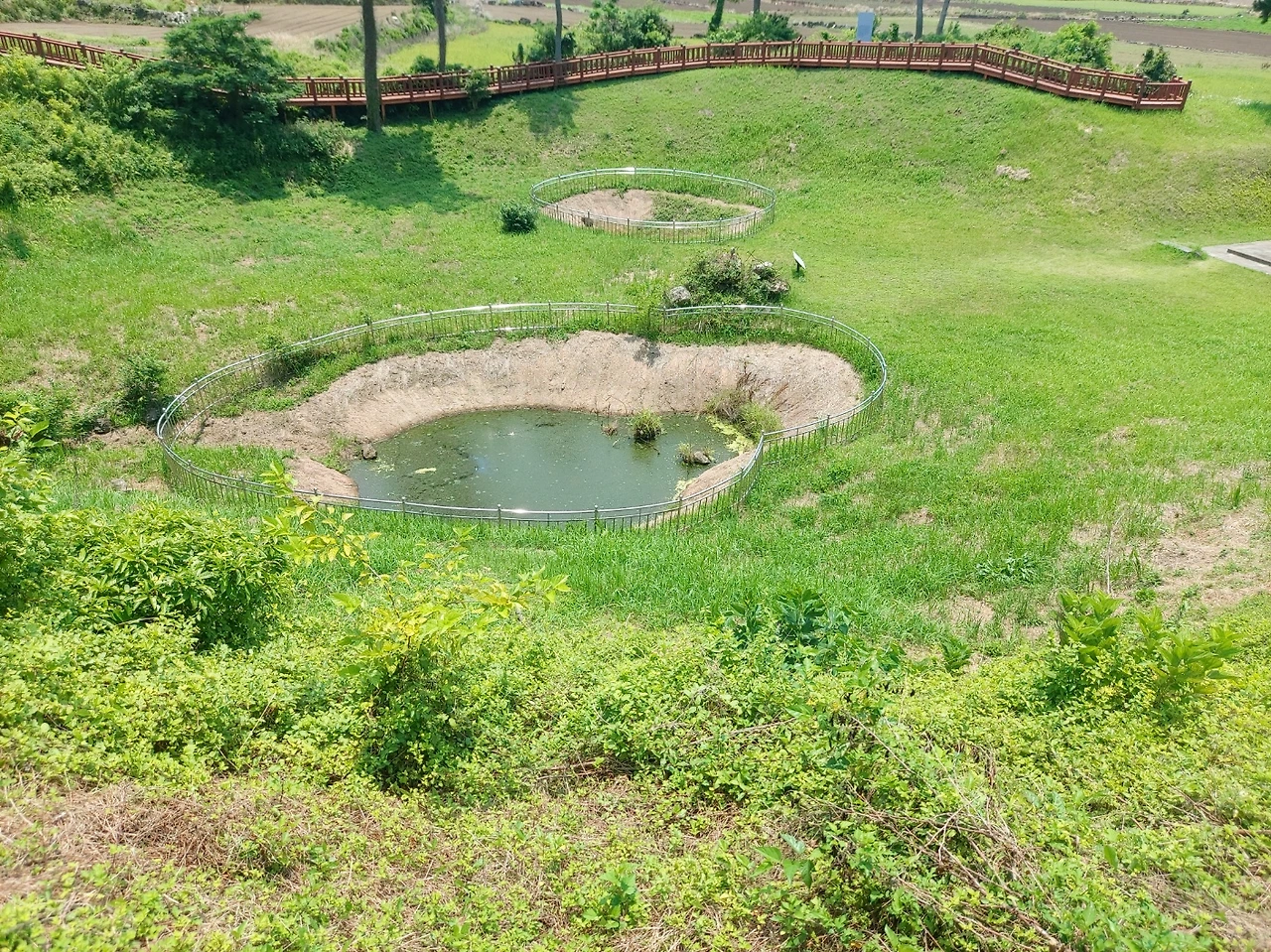 오름 정상에는 분화구와 분화구 안에 연못이 있었고 패러글라이딩을 즐기는 일행들도 있었다. 초등학생쯤으로 보이는 아이가 준비를 하고 있길래 지나가며 파이팅을 외쳐주었더니 머쓱한지 머리만 긁적거렸다. 설마 뛰어내리기 싫어서 뭉그적거리고 있는 모습을 들킨 게 민망했던 것이었을까...아니다. 고개를 흔들었다.