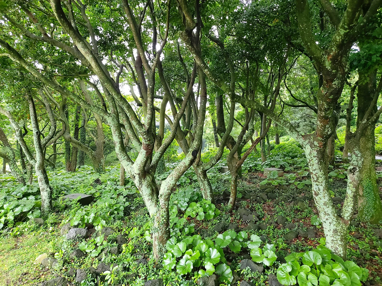 또 하나의 합리적 의심은 오름이 끝나기 무섭게 시작되는 곶자왈이었다. 아니다. 끝인지도 모를 만큼 빽빽한 곶자왈 사이로 보이는 출구와 출구인지 출입구인지 모를 녹차밭이었다.