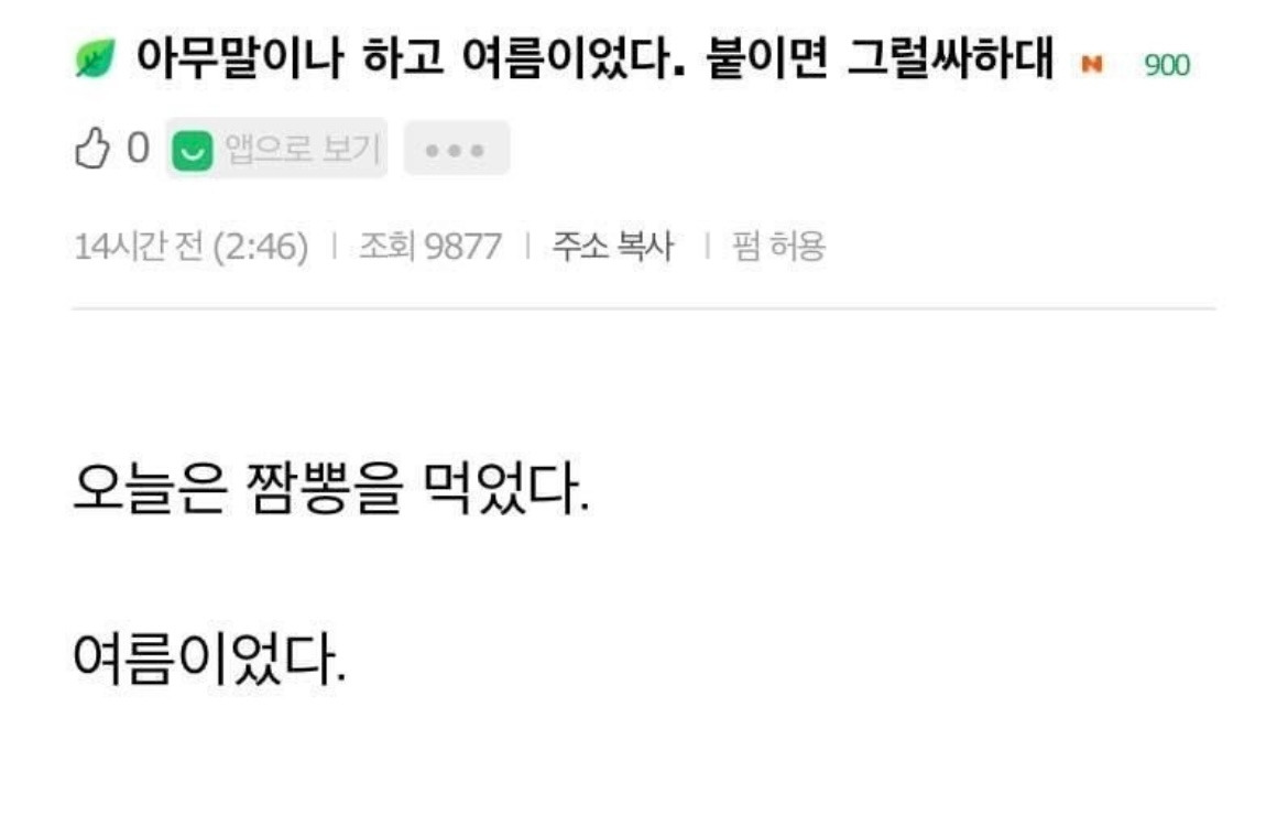 아무 사진과 글 꼬리에 ‘여름이었다.‘를 붙이면 알 수 없는 여운과 감성이 남게 됩니다.