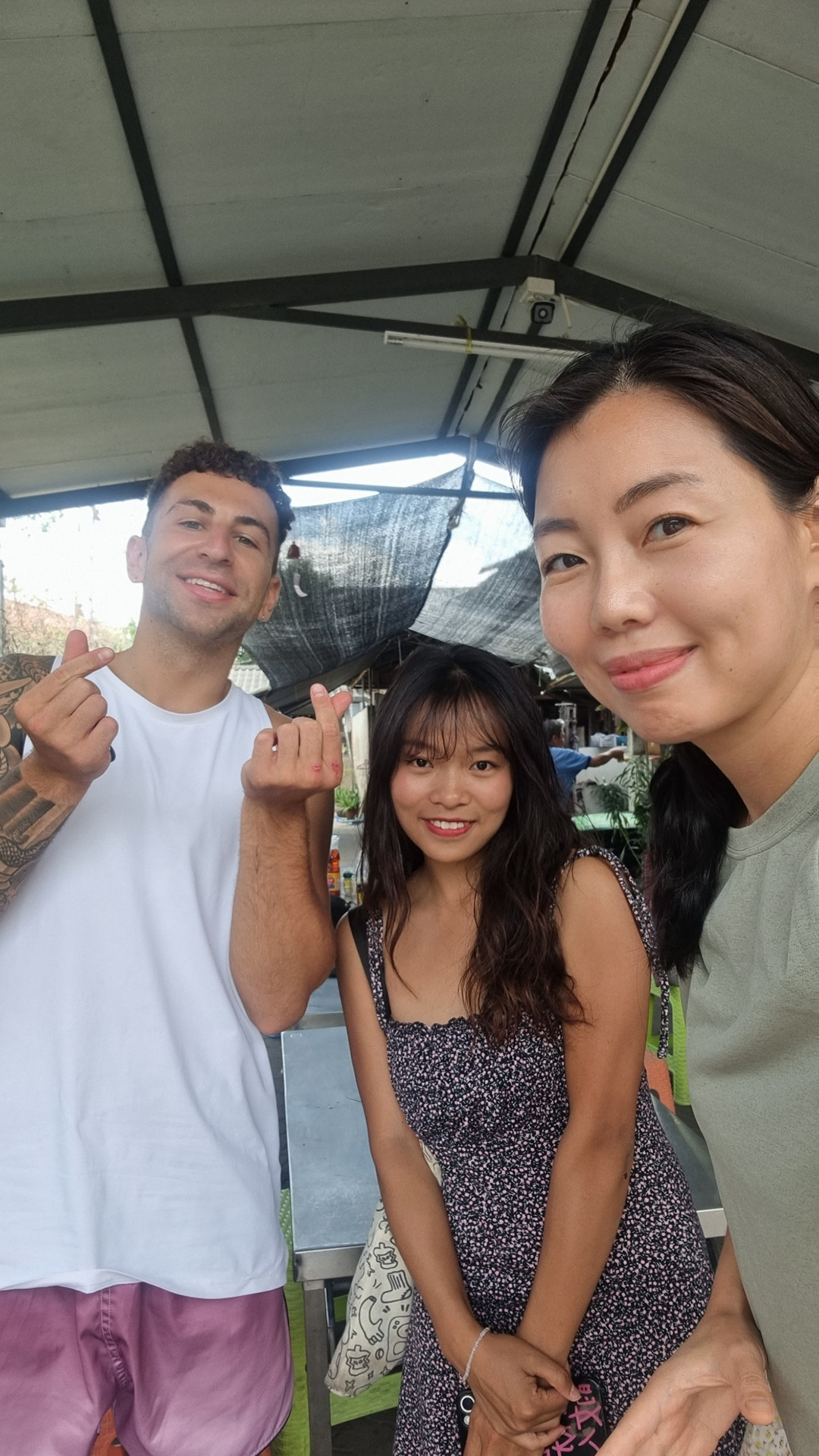 그렇게 어디서 왔냐, 여행 온 지는 얼마나 된 거냐 등 말을 이어가고 있을 때 또 혼자 들어온 손님이 있었다. 그리고 처음 들어온 젊은 남자의 일행도 들어왔다. 어쩌다 보니 식당에 있는 모든 손님들이 대화를 함께 나누게 되었다. 장기여행을 온 20대(처럼 보이는)의 폴란드 남자와 중국여자는 함께 킥복싱을 배운다고 했다. 마지막에 들어온 혼자온 손님은 나이가 꽤 있어 보이는 미국인으로, 태국에 산지 20년이 넘었다고 한다. 태국어도 유창하게 하신다.