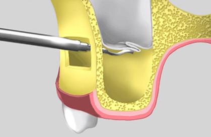 우선, 어금니 볼 쪽으로 뼈이식할 통로를 만듭니다. 그런 다음, 조그마한 구멍으로 수술기구를 넣어 상악동의 얇은 막을 들어 올립니다. 들어 올린 빈 공간에는 환자의 상태에 맞는 뼈를 이식하게 되고, 이식한 뼈가 자리를 잡는 적절한 시기가 되면 임플란트를 식립해 전체적인 과정을 마무리합니다.
