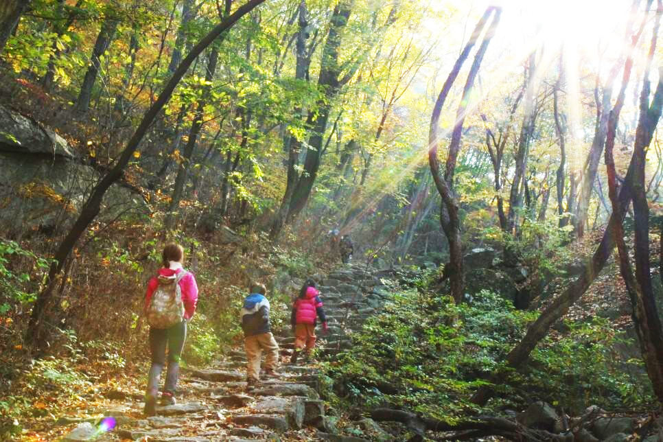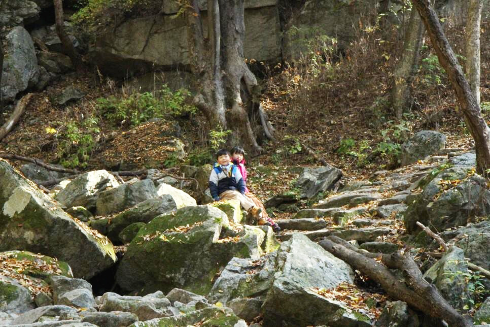 두 꼬맹이들이 또 무슨 작당모의를 한 게 틀림없다. 둘이서 수군수군거리더니 냅다 뛰어올라간다. 행여 돌부리에 걸려 넘어질까 천천히 올라가라고 뒤통수에 대고 소리쳐 보지만, 들어먹을 녀석들이 아니다. 저만치 가는가 싶더니 이내 보이지도 않는다. 부지런히 따라 올라가면 바위에 걸터앉아 빤히 엄마, 아빠를 내려다보다가 거의 왔다 싶으면 또 냅따 뛰어올라간다. 엄마, 아빠 골탕 먹이겠다는 심산이 틀림없으리라.