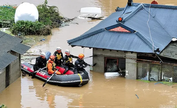 어느 작은 마을에 홍수가 나 사람들이 대피했다.