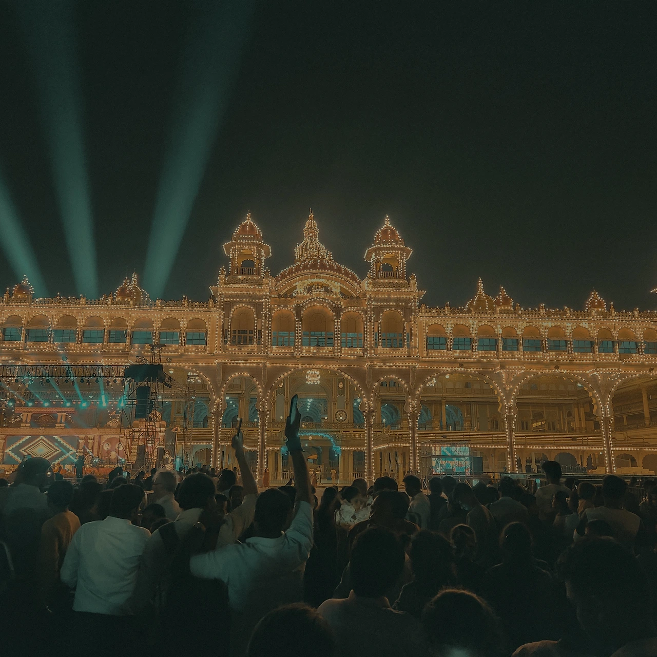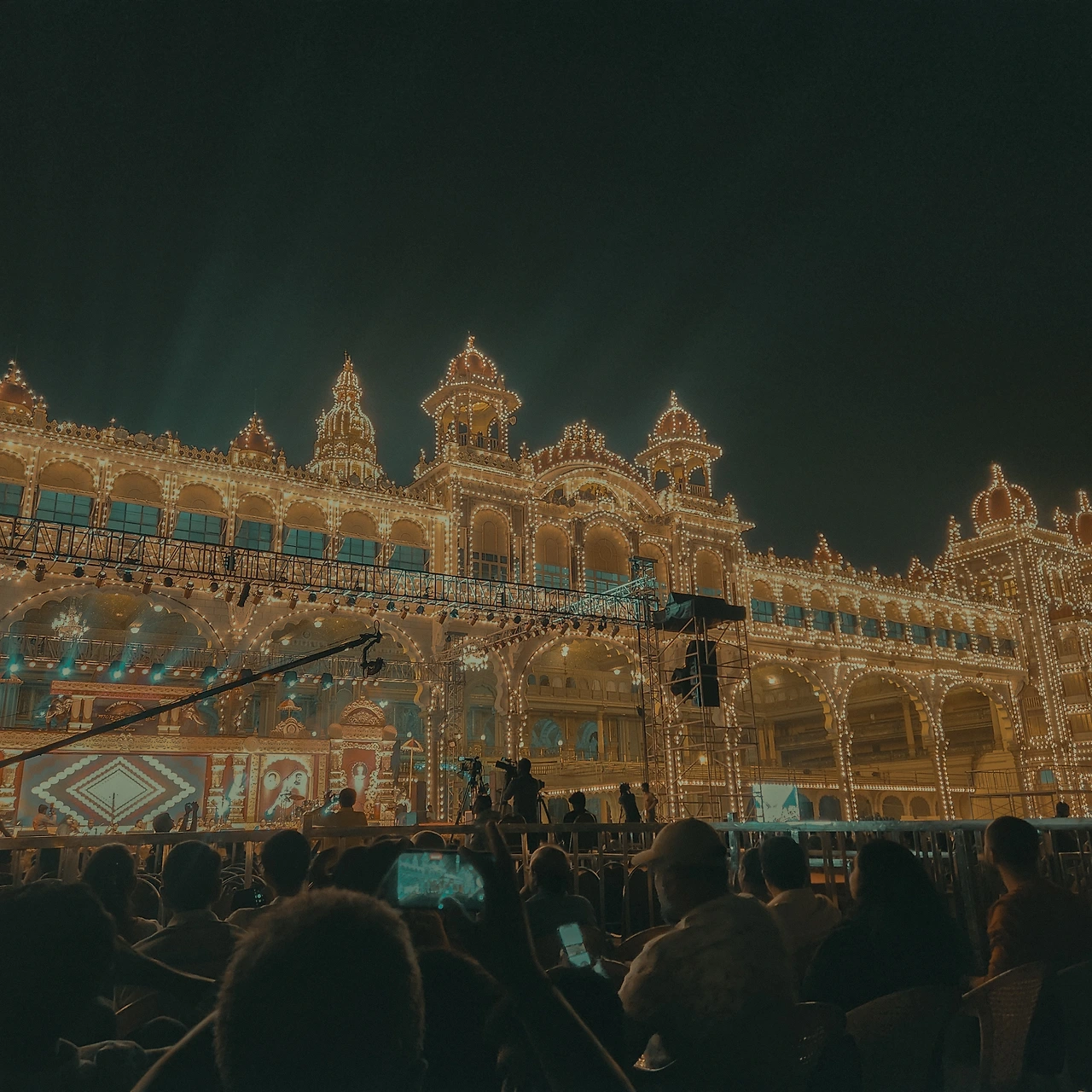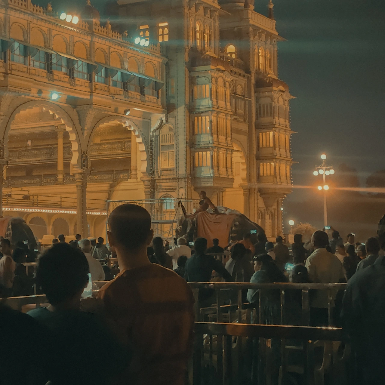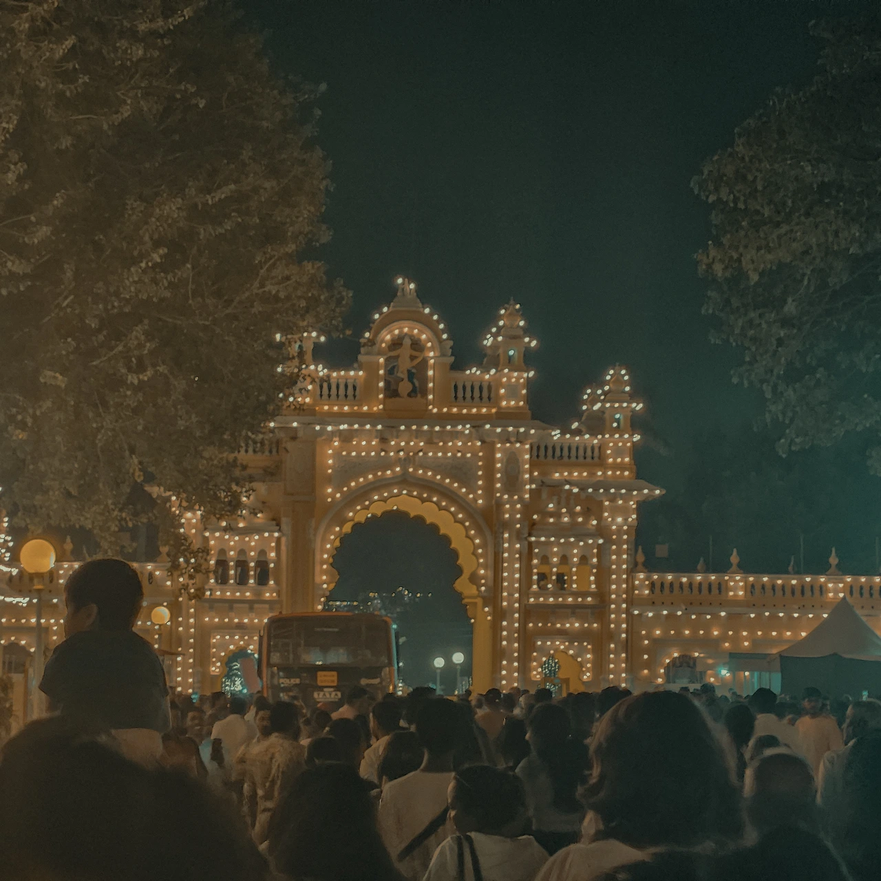 빛 축제 관람을 위해 마이소르에 하루 더 머물게 됐다. 하루 종일 방에서 뒹굴뒹굴하다가 밖으로 나가 산책도 하고, 밥도 먹고, 돌아와 다시 뒹굴뒹굴했다. 마이소르 궁전에서 열리는 축제가 유일한 일정이었다. 누워있다 보면 시간이 느리게 가는 것 같다가도 어느 순간 보면 훅 지나가 있다. 마이소르 궁전까지 걸어가려 했기에 숙소에서 넉넉히 나왔다. 여기서도 애용하는 이동 수단은 두 발이었다. 익숙한 마이소르역과 크리켓 경기장을 지나니 처음 보는 도심이 나타났다. 자동차, 버스, 릭샤, 사람들로 뒤섞여 에너지가 넘쳤다. 인도에선 별로 시끄러운 정도가 아니었다. 마이소르 궁전으로 가는 길목마다 사람들로 넘쳐났다. 작가님과 롱님은 먼저 바깥 구경을 하고 있었기에 매표소 앞에서 합류했다. 인도에선 눈치싸움을 잘해야 한다. 특히 이렇게 사람 많은 곳에서 가만히 있다가는 코 앞에서 새치기당할 수 있다. 어깨싸움을 통해 자기 자리를 확실히 선점해야 한다. 그리고 기차놀이를 하듯 앞에서 들어갈 때 바로 꼬리를 물어야 한다.