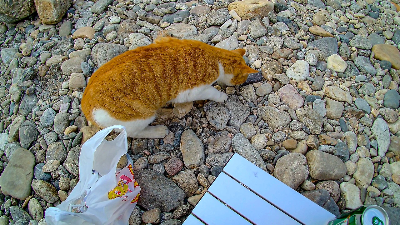 치킨 냄새를 맡았는지 야생의 사냥꾼은 우렁찬 울음소리로 존재감을 뽐내며 다가왔다. 울음소리는 흠칫 놀라게 했다. 고양이는 주위를 맴돌며 치킨과 내 얼굴을 여러 번 바라봤다. 의도가 뻔히 보이는 행동에 어이없지만 귀여운 사냥꾼을 보고 역할 놀이에 어울려줬다. 잔뜩 겁먹은 인간은 치킨을 작게 쪼개 바쳤다. 여러 번 그렇게 받아먹더니 배불렀나 보다. 눈을 스르륵 감으며 졸기 시작했다. 장난기가 발동했다. 치킨 냄새를 맡고도 계속 잘까 싶어 치킨을 입 가까이에 대보았다. 눈을 번쩍 뜨더니 날름 먹는다. 또 존다. 갖다 댄다. 먹는다. 몇 번 반복하고 나니 치킨이 다 떨어졌다. 그러자 고양이가 몸을 움직였다. 내 주변을 돌며 고양이 자세를 여러 번 보여줬다. 먹을 것을 더 달라는 협박이 아닌지 싶었다. 협박(?)이 먹히지 않자 자리를 떠났다. 뒤도 돌아보지 않고 다른 사람이 있는 곳으로 향했다. 짧았지만 함께한 추억이 있는데 세차게 가버리는 행동에 어이없었다. 사람을 호락호락하게 보다니 이곳 터줏대감은 막강했다.