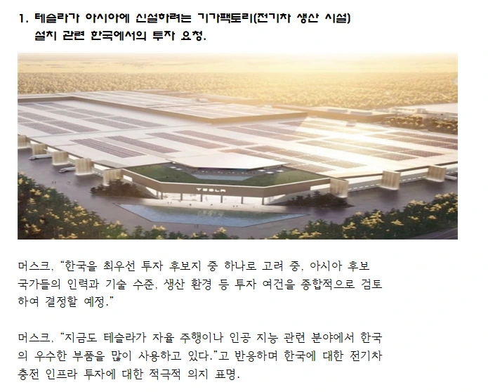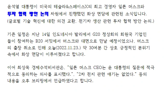 일론 머스크와 한국의 투자 협력 방안 논의