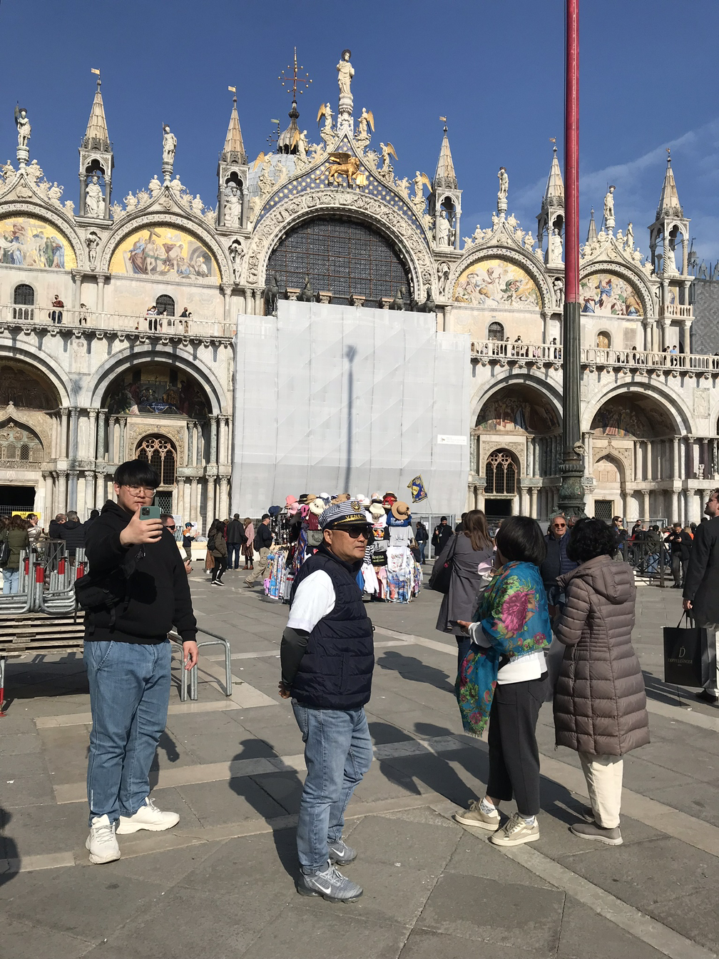 베네치아 시내까지 차로 이동해 갓길 주차장에 차를 대고 여객선으로 30분 정도 산 마르코 대성당(Basilica Cattedrale Patriachale di San Marco)이 있는 본섬으로 갔다. 물의 도시, 베네치아. 여러 섬으로 이루어진 베네치아는 곧바로 건축을 할 수 없는 진흙의 무른 땅이어서 기둥을 박고 그 위에 건물을 세웠다고 한다. 그 덕분에 건물과 건물 사이에 바닷물이 흐르는 수로가 형성됐고 그곳으로 수상택시와 조각배가 관광객을 태우고 다닌다. 수로에서는 조각배의 배몰이꾼의 멋진 퍼포먼스도 벌어진다. 긴 노를 젓고 다니다 이따금 그 노로 벽을 밀기도 하고 자신의 기다란 발로 건물 벽면을 힘차게 차며 배를 모는 묘기를 선보인다. 색다른 구경거리에 보는 이의 눈이 즐겁다.