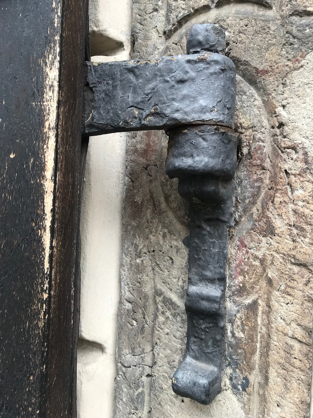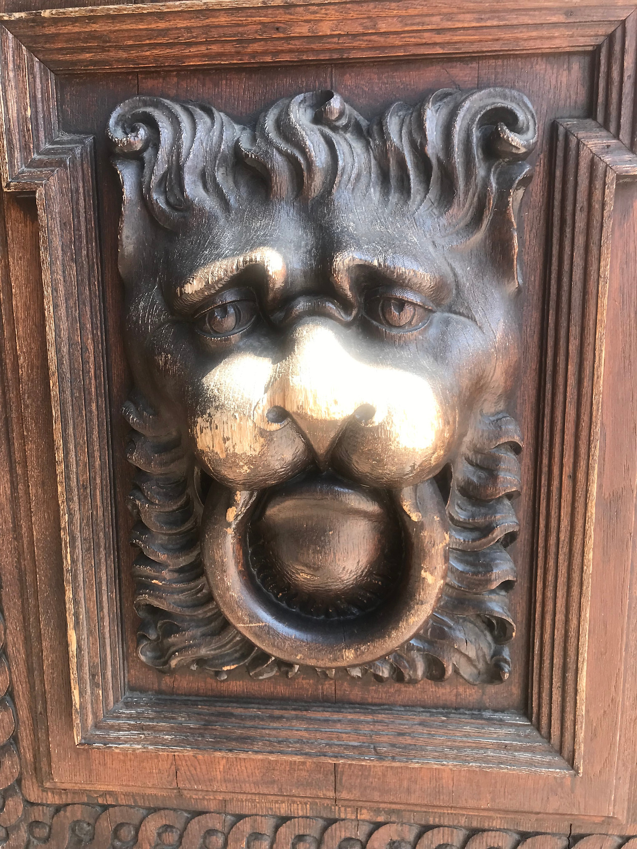 대문을 바치고 있는 무쇠 돌쩌귀와 사자문양의 문고리