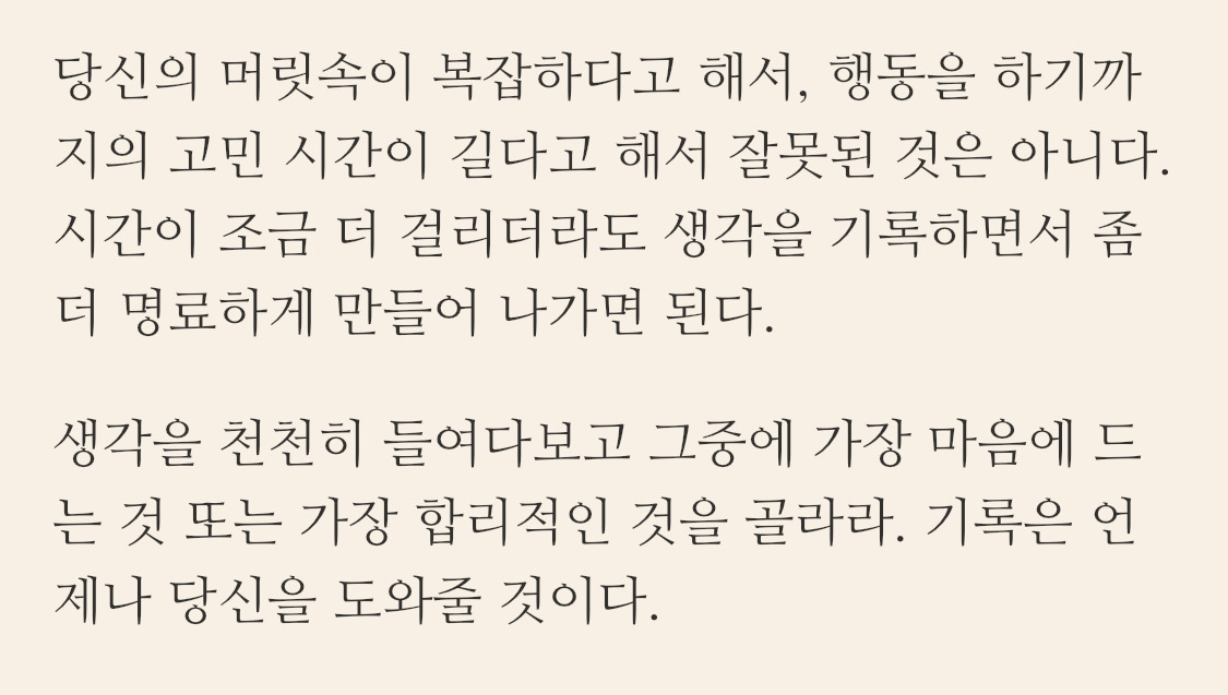와닿아야 실행에 옮기게 돼서 생각하고 받아들이는 과정이 남들보다 긴 것 같다. 타고나길 그런 건데 어쩌겠어.