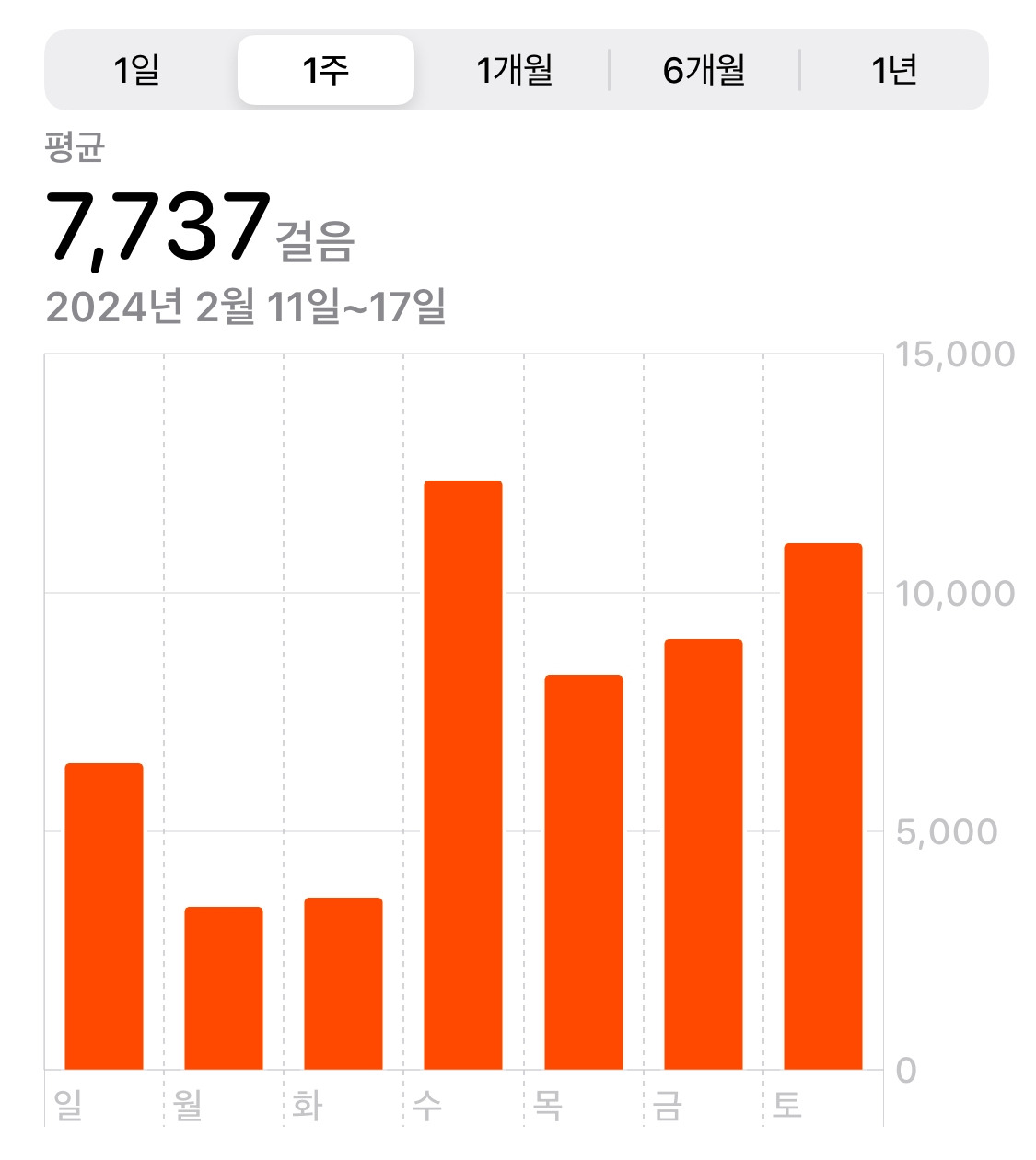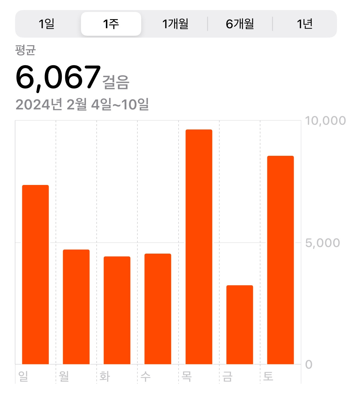 주 평균 걸음수도 매주 더 늘고 있어서 아주 뿌듯함!