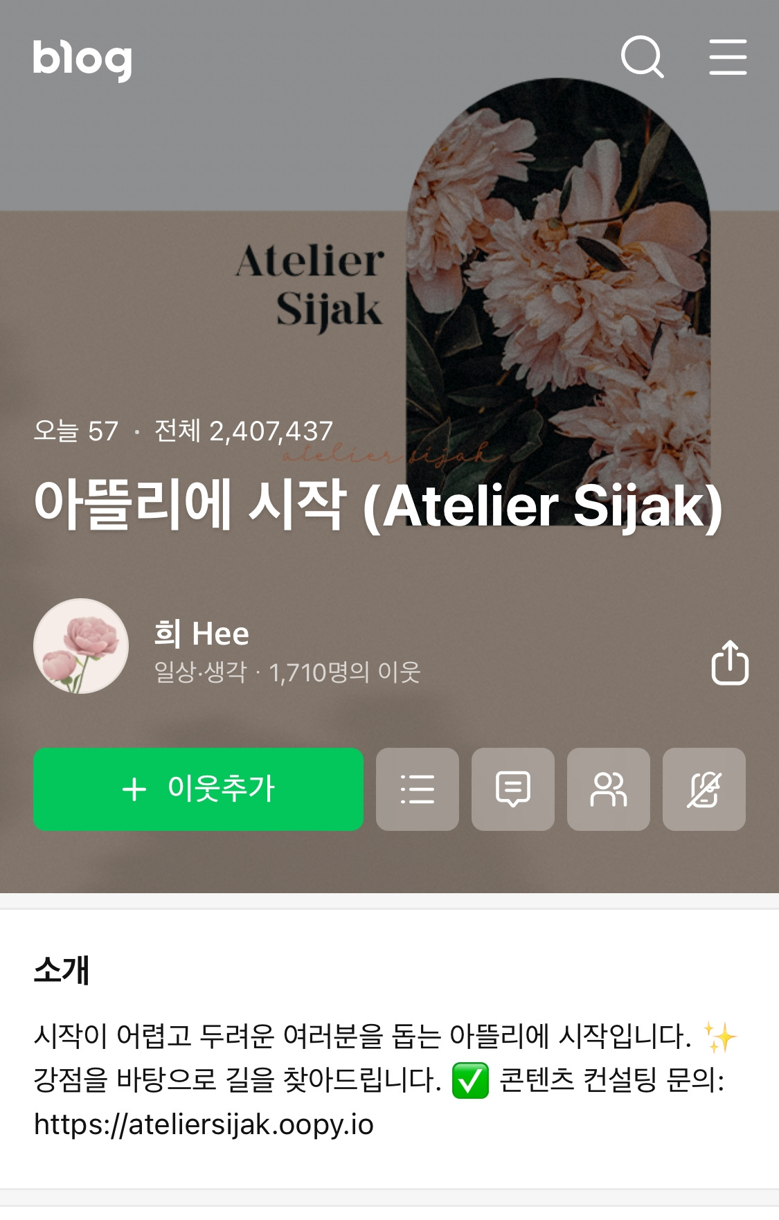 블로그 메인의 문구부터 나를 부르는 것 같았다.