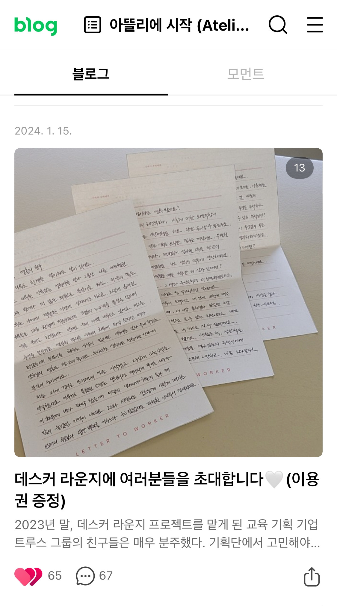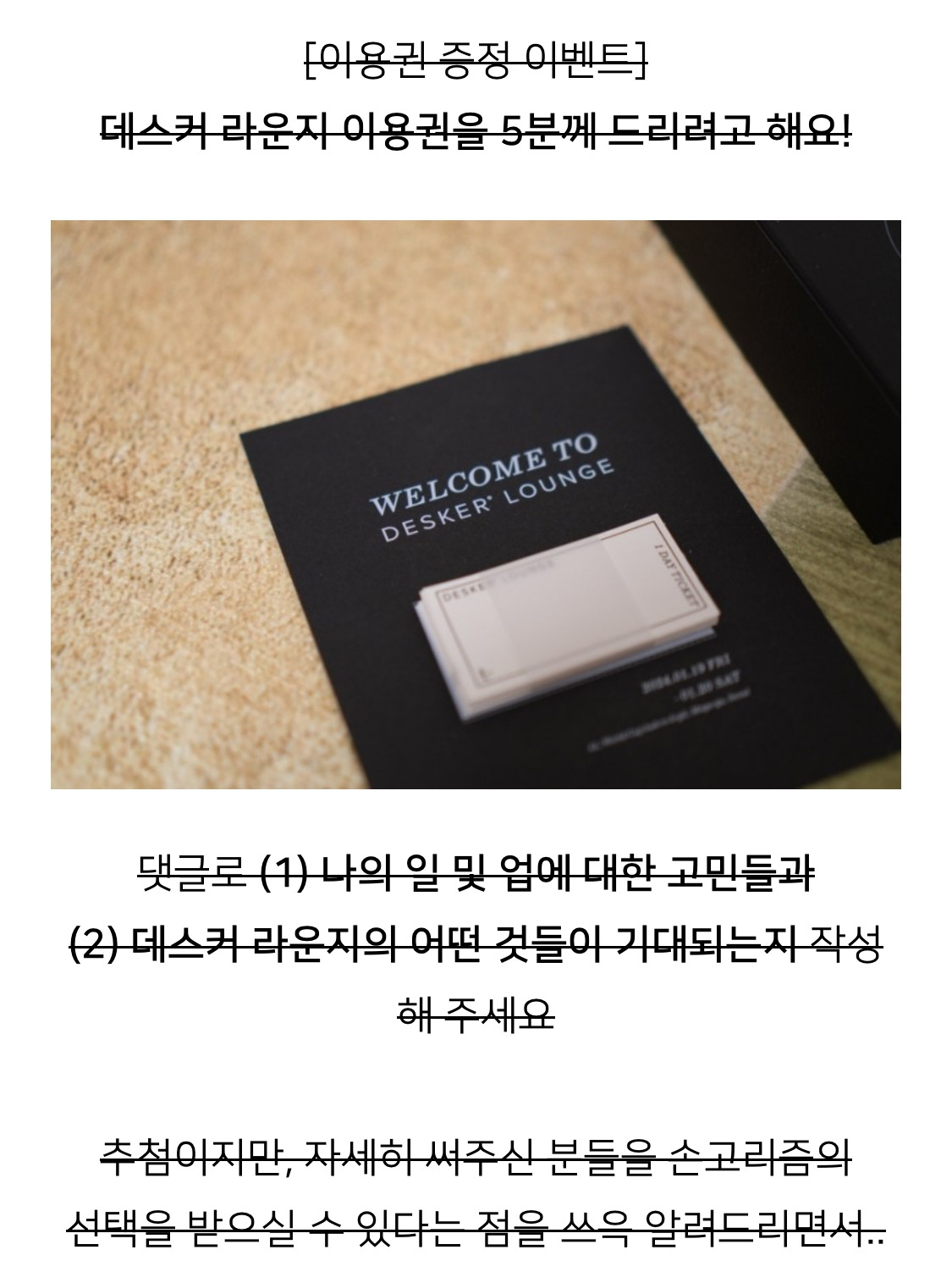 블로그를 운영하고 계시는 ‘희님’이 데스커 라운지 이용권을 나눠주신다는 포스팅을 보게 됐다.