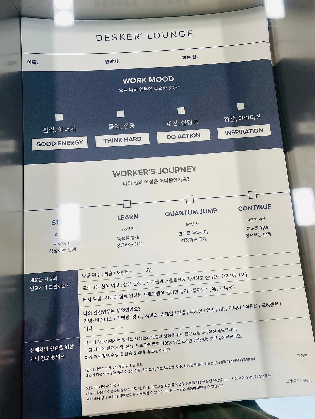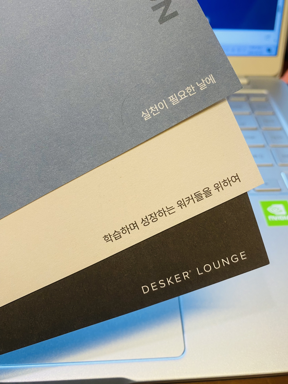 블로그에도 어제 다녀온 데스커라운지에 대해 남겨두었는데 블로그는 디자인 작업물을 올리는 공간이라 그런지 정보나 사실에 대한 거에 포커스를 맞춰서 글을 쓰게 되는 게 어딘지 아쉽다.