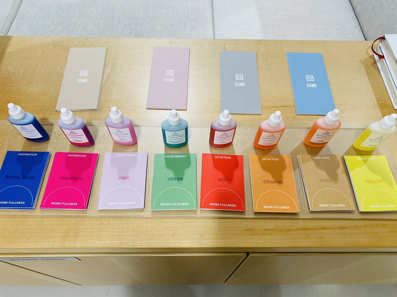 메세지 카드로 각자의 이야기를 풀어가는 시간이었는데 내가 좋아하는 색이아닌 그날 딱 눈에 들어오는 색을 고른다. 심리테스트 처럼 그날에 나에게 끌리는, 필요한 에너지라 거기에 맞는 향과 메세지카드의 문장들을 만날 수 있다.