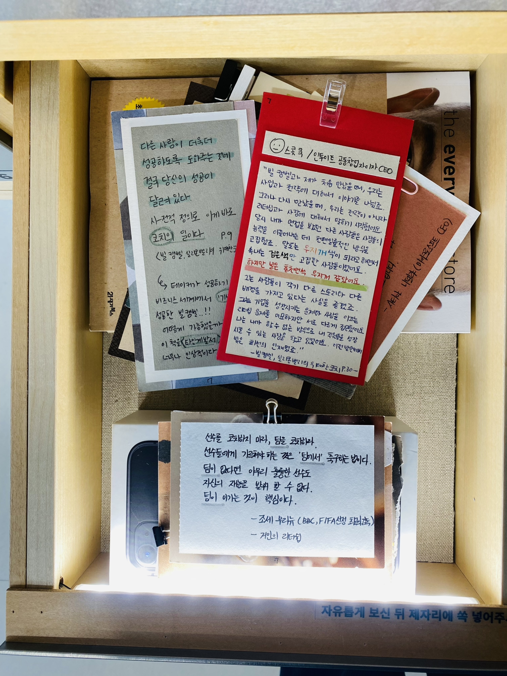 일에 대해 잘해내고 싶어 크고 작은 고민을 하는 사람들의 마음과 상황이 비슷하게 연결되고 있는 것 같아 공감되는 부분도 많았고 나보다 더 치열하게 고민의 시간을 지나왔던 분들의 깨달음도 느낄 수 있었다.