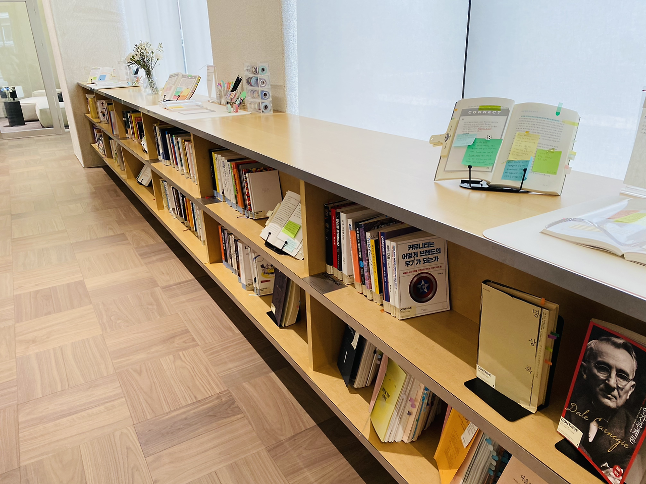 내가 앉았던 도서관 스타일의 개방형 책상과