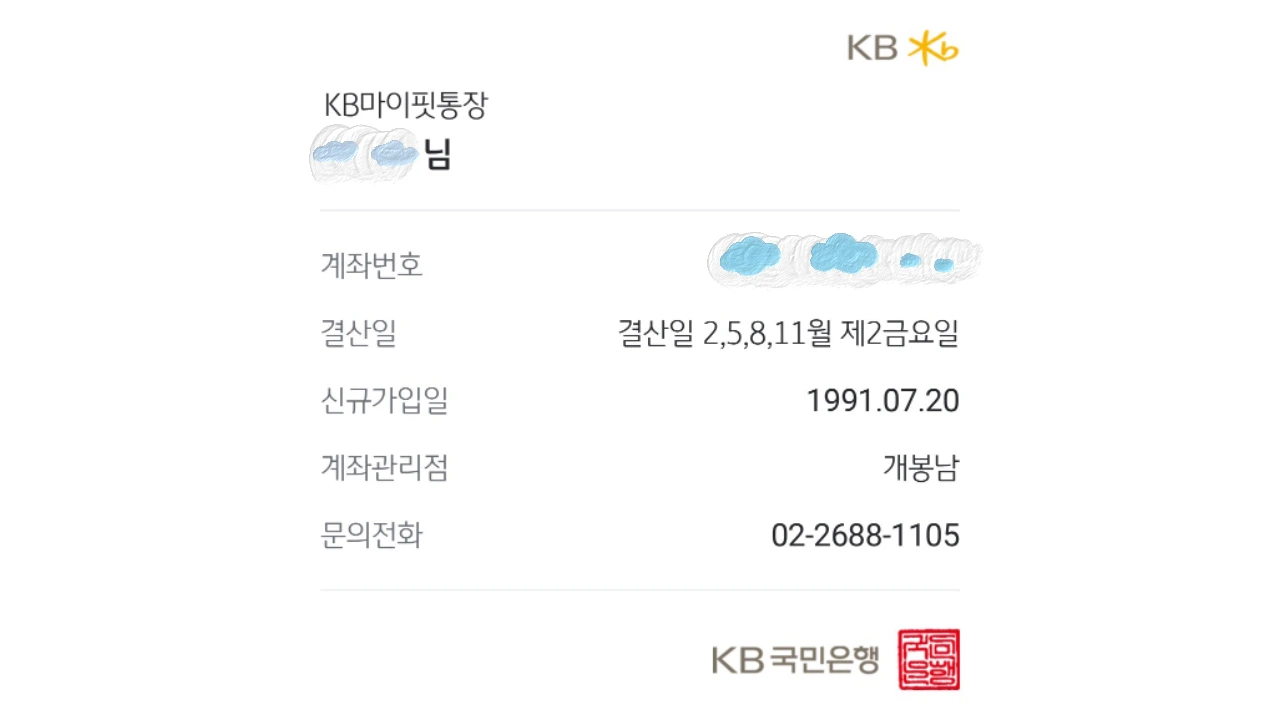 국민은행이 무려 주택은행이던 시절에 만든 통장인데, 은행 어플리케이션에 로그인하면 내 통장의 첫 개설일이 1991년 7월로 나온다.