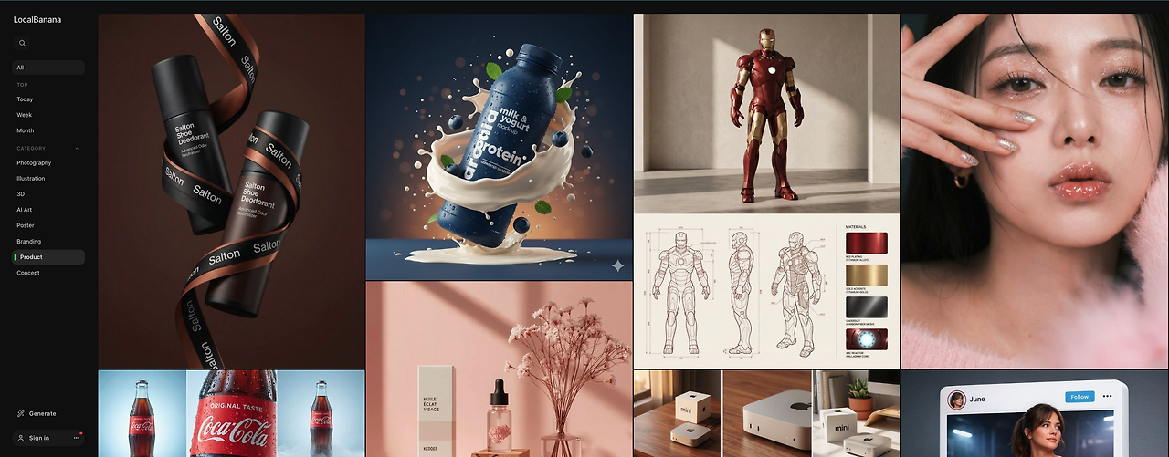 LocalBanana.io는 나노바나나 / 나노바나나프로 전용 프롬프트 샘플 페이지이다. 프롬프트 엔지니어링을 몰라도 생성된 AI 이미지가 어떤 프롬프트를 통해 만들어졌는지 가르쳐주는 사이트라고 보면 된다.