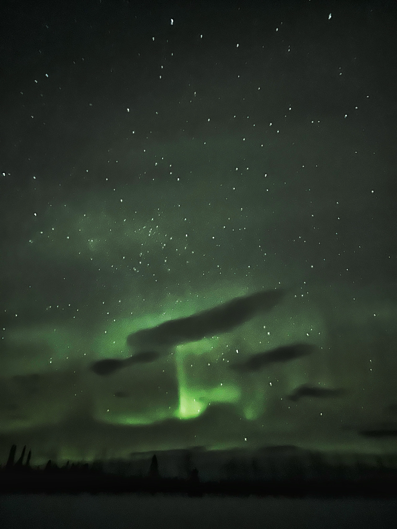 오로라는 사실 육안보다는 사진으로 찍었을 때 더욱 선명하게 보인다. 빛을 한 사진에 모아 담기 때문이다. 삼각대가 없어 손으로 가만히 초점을 맞추며 들고 있었는데, 혹시라도 흔들릴까 숨을 참고 하늘을 보던 10초의 시간, 그 순간들의 집합. 아름답고, 또 희귀한 오로라를 볼 때 느껴지는 경이로움은 살면서 느끼는 몇 안 되는 황홀한 기억을 만든다.
