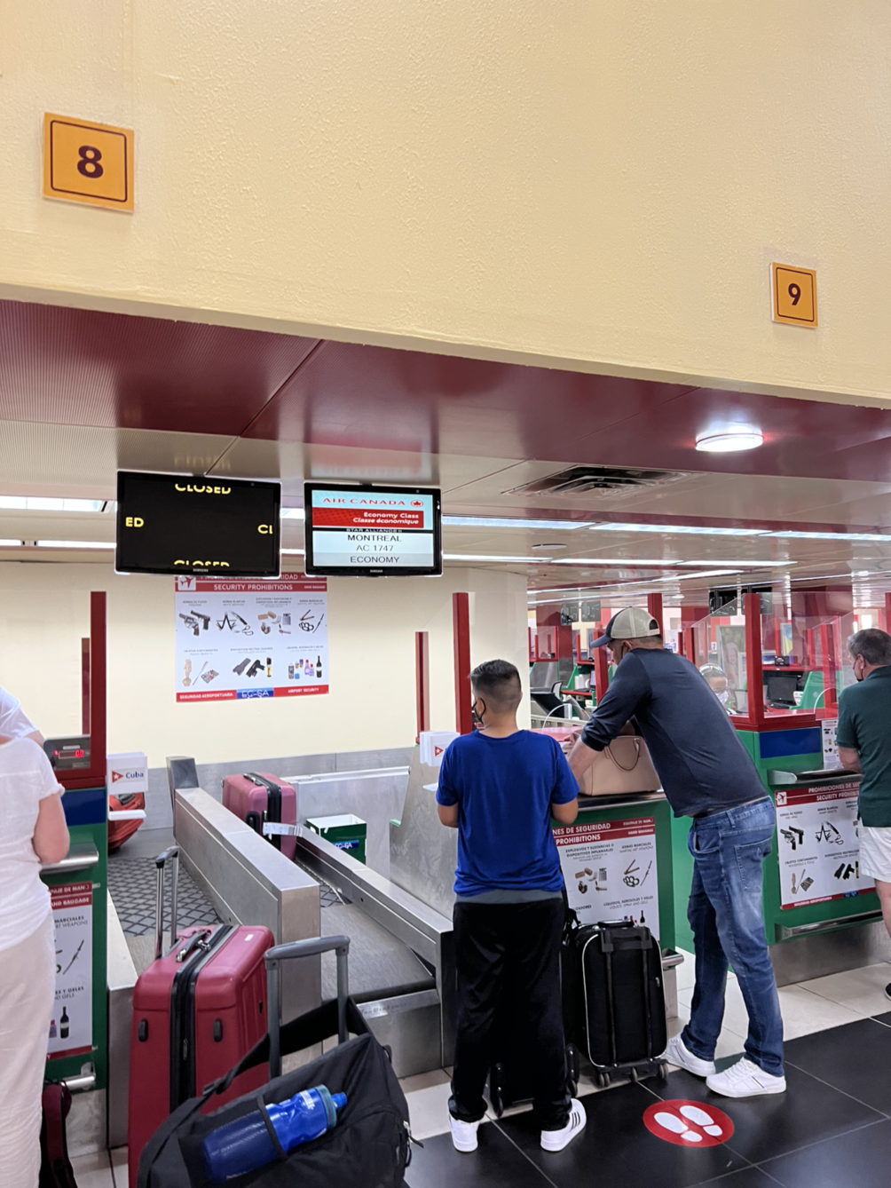 내가 입출국한 바라데로 공항은 게이트가 6개 정도로 굉장히 작았는데, 사람은 꽤 많았다. 에어캐나다에는 다행히 줄이 별로 없어, 두세 명만 앞에 두고 금방 체크인을 받았다. 반면 다른 에어라인에는 줄이 정말 길었기에, 넉넉하게 오지 않았다면 촉박할 수 있었겠구나 싶었다.