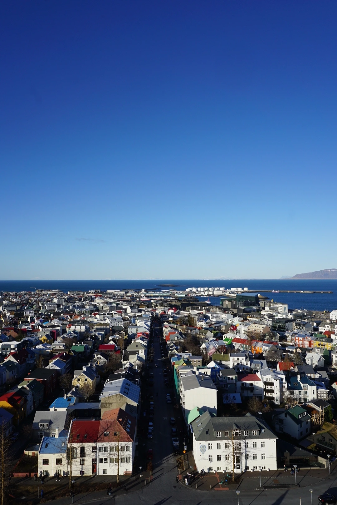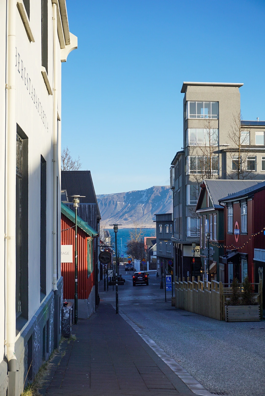 레이캬비크에 도착해 처음으로 탄성을 내뱉은 순간은 바로 건물 사이로 보이는 바다와 산을 마주했을 때! 골목 끝마다 저 멀리 진한 남색의 바다와 설산이 얼굴을 내밀고 있다.