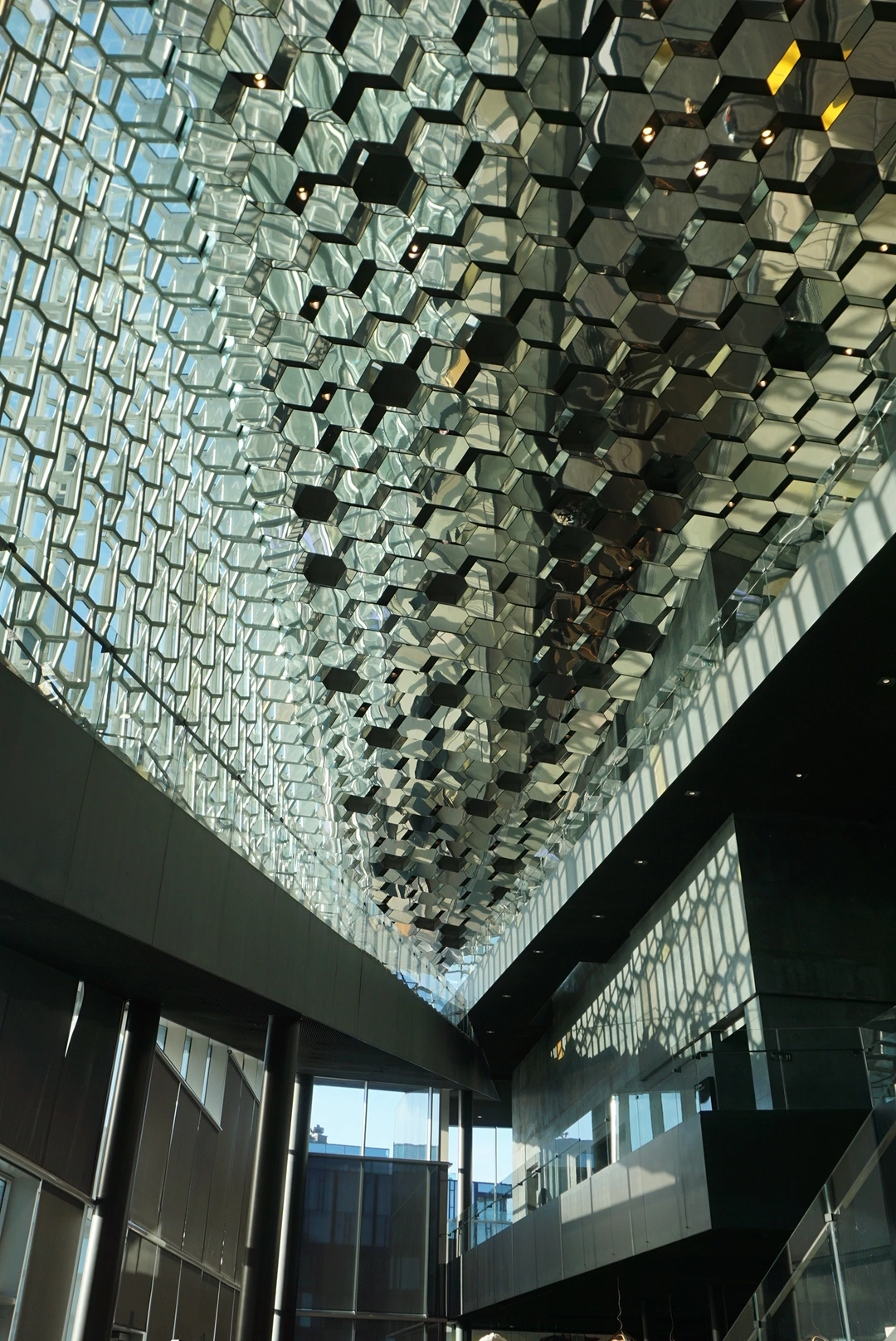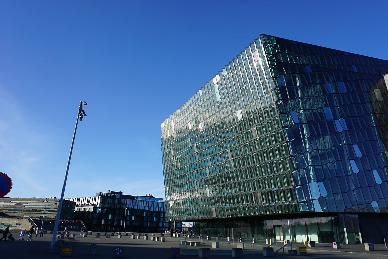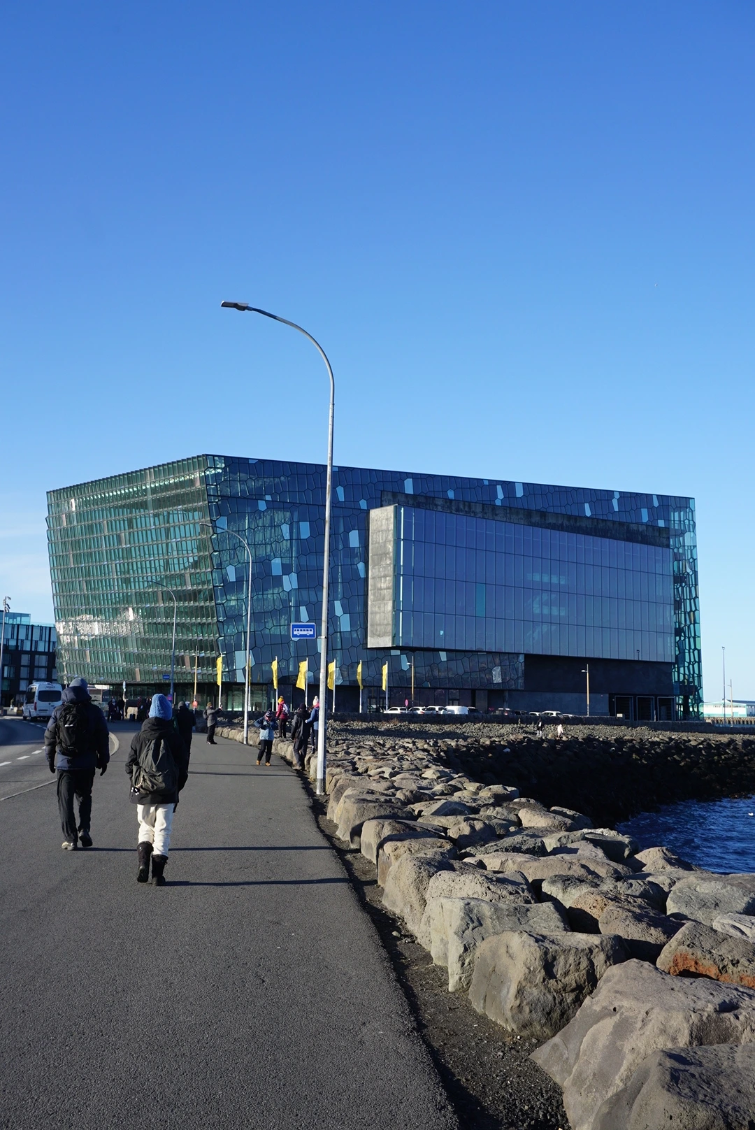 시내를 벗어나 해안가를 걷다 보면 하르파라는 콘서트홀을 만날 수 있다. 밖이 초록색 유리로 덮여 있는데 밤에는 형형색으로 빛난다! 거울이 가득한 내부 천장 장식도 예뻤고, 바다와 산이 보이는 통창 앞에 앉아 있을 수 있는 테이블도 있어 추울 때 들어가기 딱 좋다.