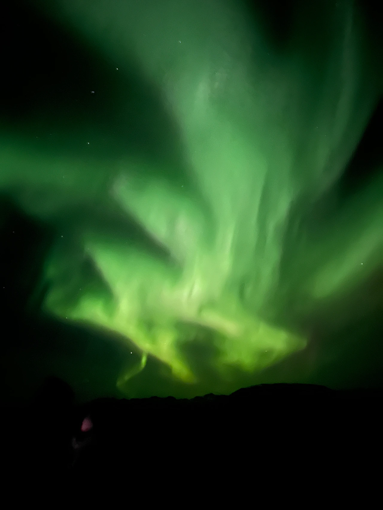 아이슬란드에 오기 전, 부모님이 가장 기대하셨던 이벤트는 오로라. 하늘을 채우는 초록빛을 보는 게 가장 큰 바람이라고 하셨다. 나는 캐나다에서 오로라를 한 번 봤기 때문에 아주 큰 기대를 하지는 않았지만, 태양 활동이 가장 왕성한 시기에 보는 오로라는 또 더 크고 선명할 수 있다는 기대가 있기도 했다!