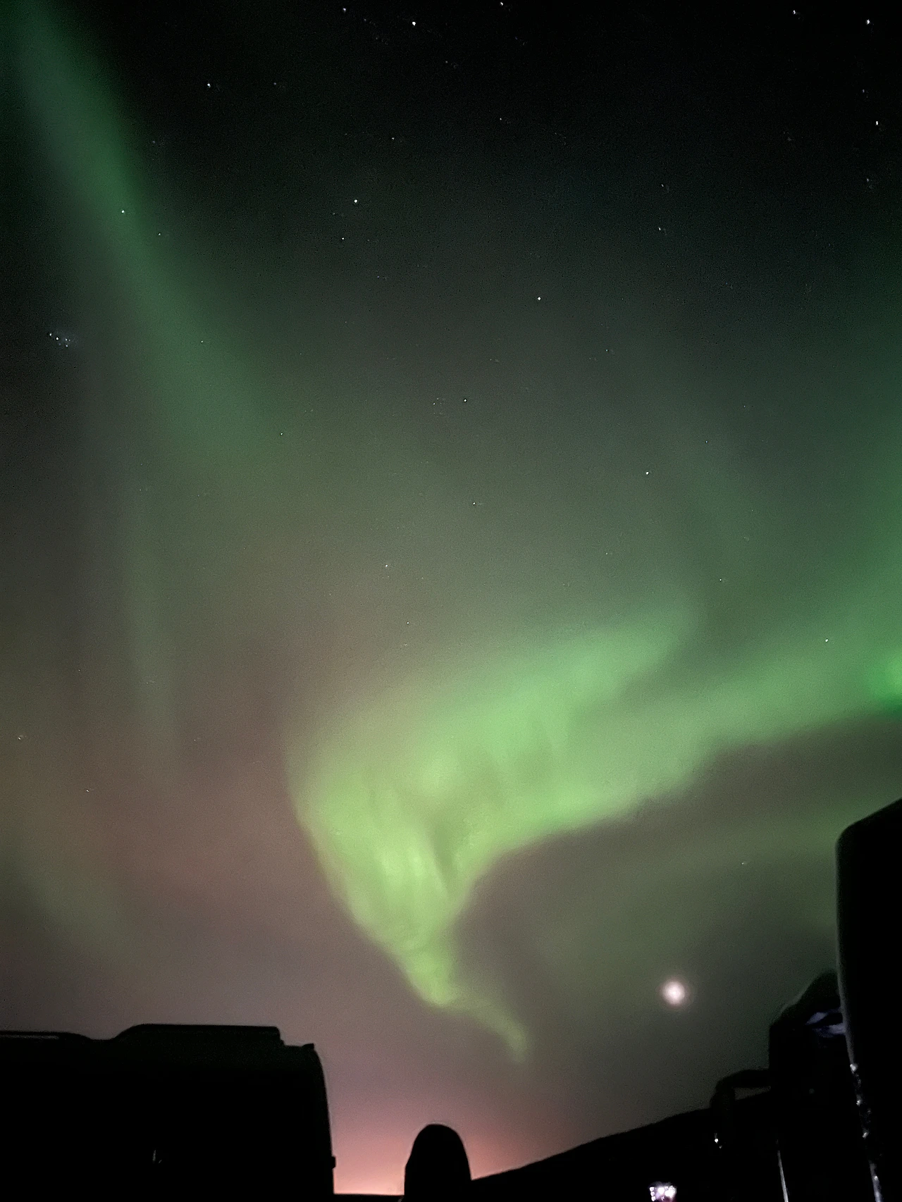 특히 가장 기대했던 댄싱 오로라도 원 없이 봤다. 촤르륵 펼쳐지며 피아노 건반처럼 움직이는 오로라를 추운 와중에도 내내 눈에 담았다.