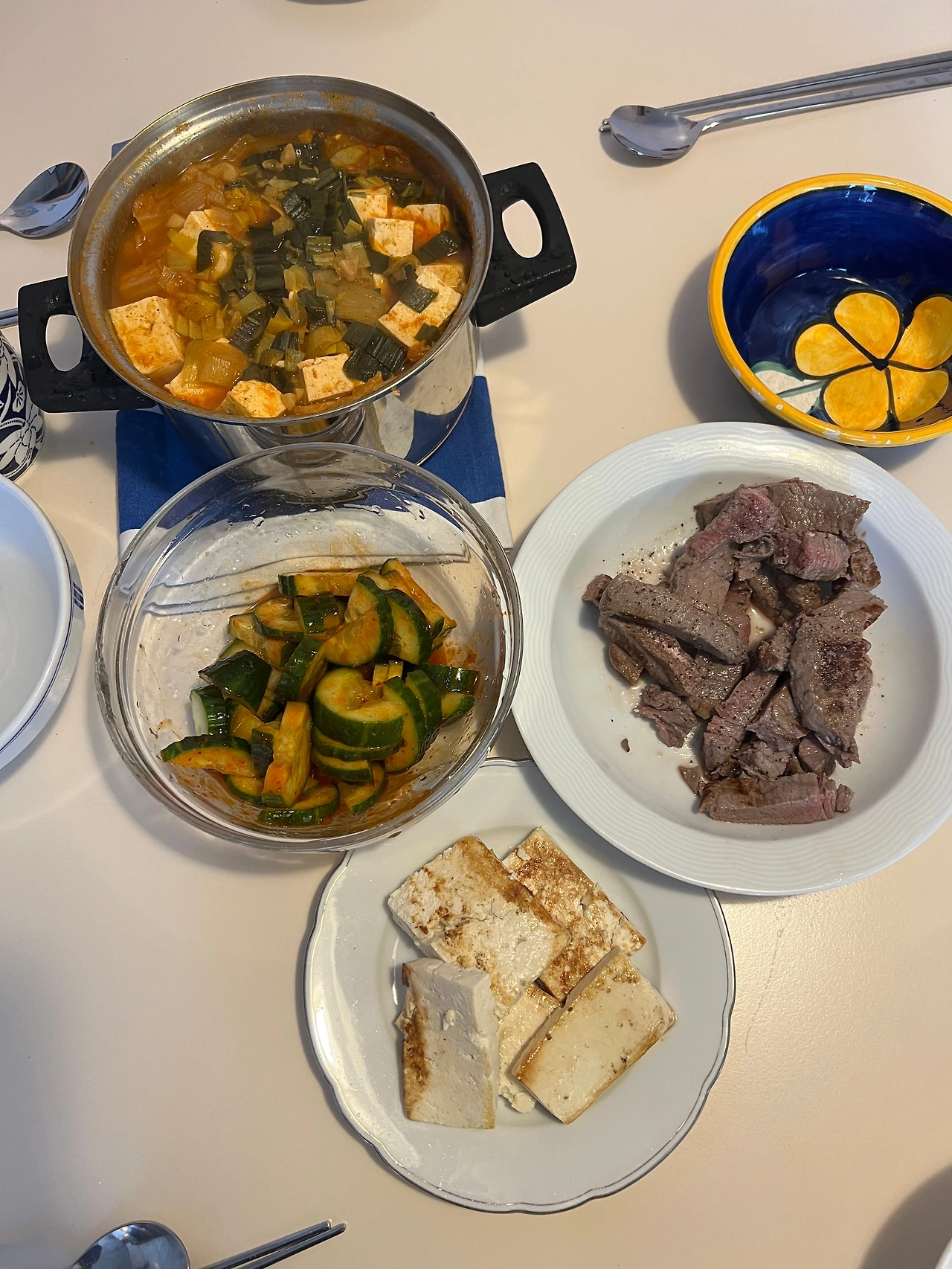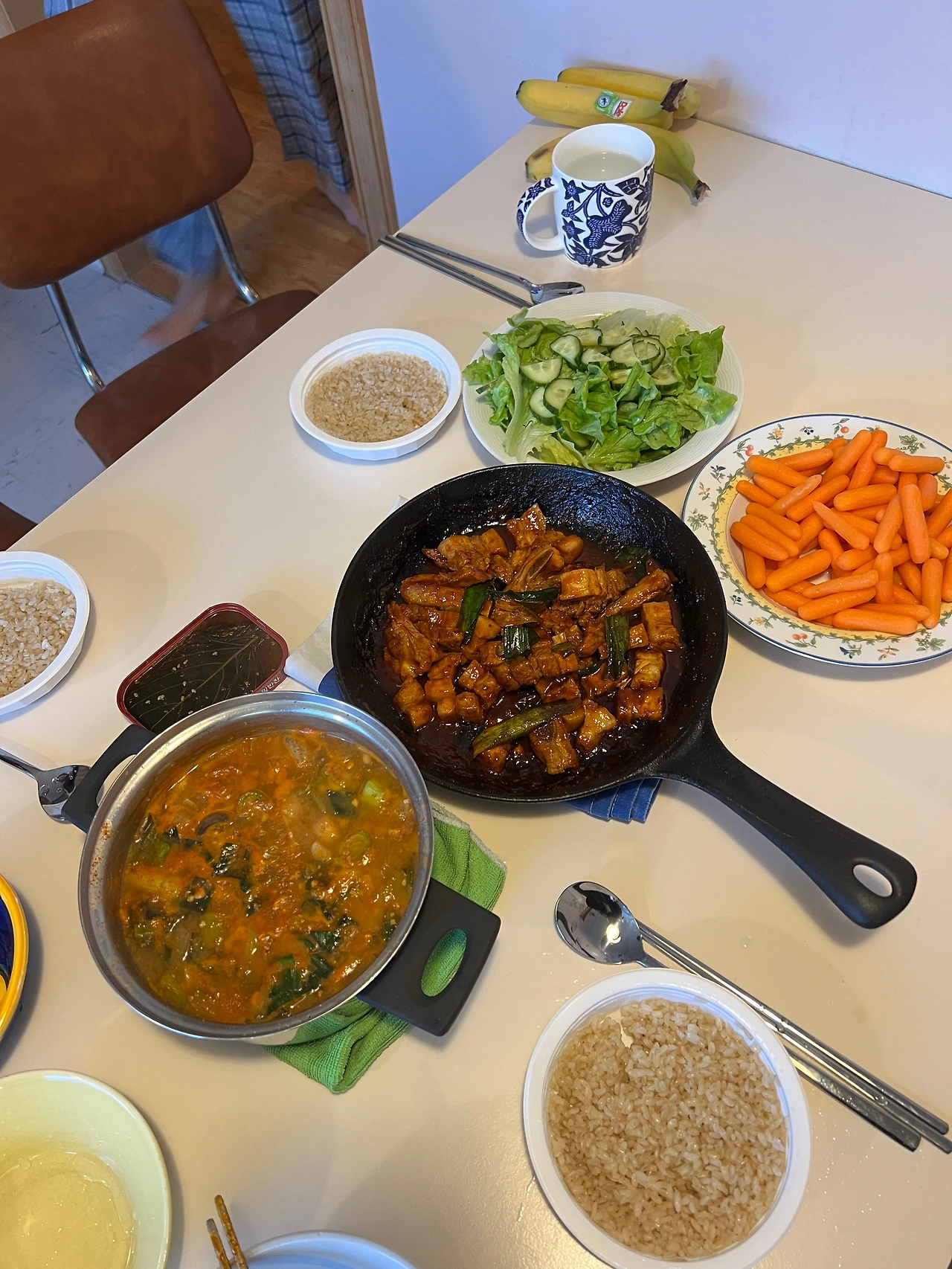 또 한식이 그리울 즈음 먹은 짜장밥과 고추장찌개. 당근, 양파, 감자, 오이 등 야채는 아주 풍부하니 양념만 있으면 뭐든 만들어 먹을 수 있다!