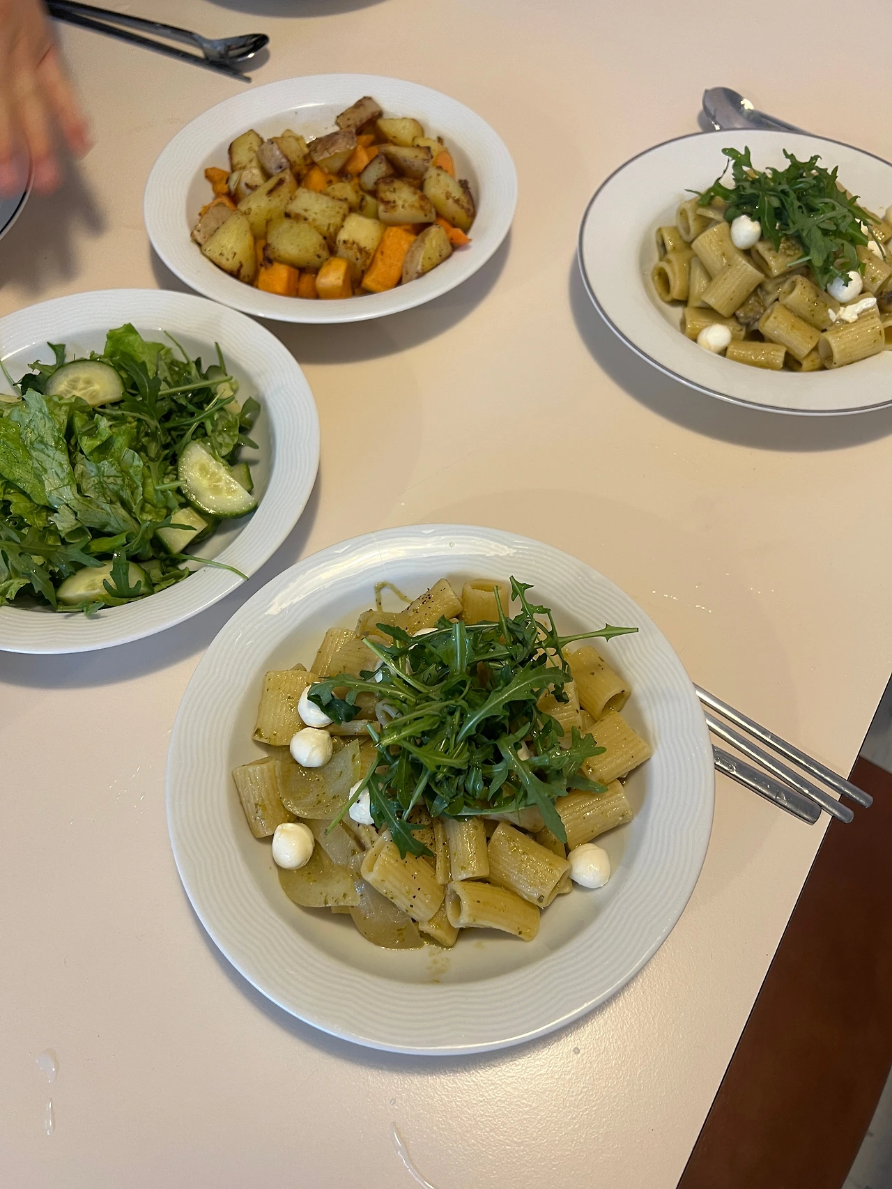 한식 말고 파스타와 빵을 먹기도 했다. 루꼴라는 한 팩에 4,000원 정도였고, 마트에 있는 파스타면과 모짜렐라 치즈, 바질페스토로 맛있는 한 끼를 요리했다.