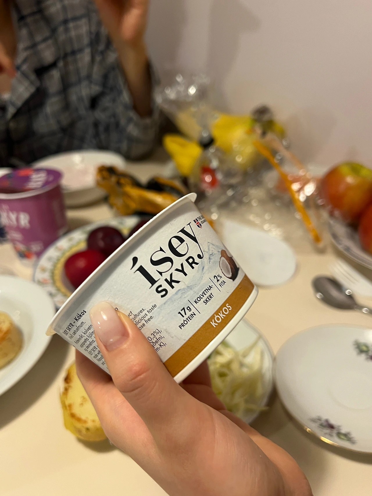 아침은 요렇게 간단히 뚝딱 해결했다. 강력 추천하는 ‘스키르’는 아이슬란드 요거트인데, 맛도 다양하고 적당히 꾸덕해 아침으로 제격이었다. 딸기와 블루베리 맛이 제일 맛있었고 코코넛, 크림브륄레 맛도 있었다. 단백질 함량도 높고 가격도 몇 천 원 정도라 빵에도 발라 먹고 아몬드도 넣어 먹으며 거의 매일 먹고 있다.
